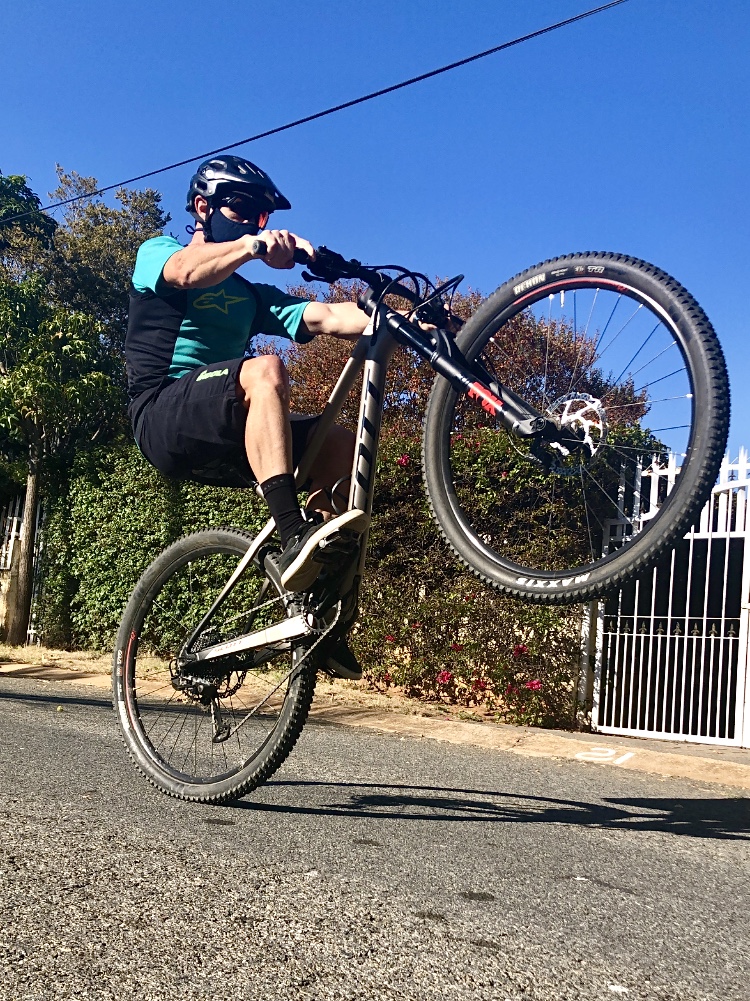 Level 4 arrived on 1 May and I was able to begin practising my manuals – 24 days left. But only between 06h00 and 09h00 each morning. It’s difficult to learn new skills on a bike when you’re cold, because you tend to tense up, so most mornings, when it was a bit warmer at around 08h15, I’d roll out of my gate and spend 40 minutes trying to master a meaningful manual.