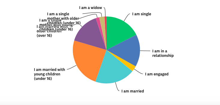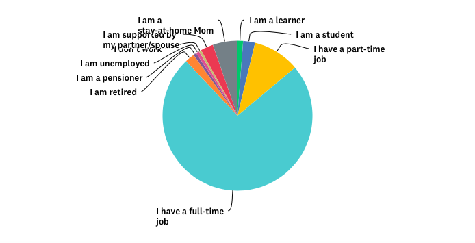 Full-time job, part-time job and stay-at-home Mom are the top three, with full-time job by far the largest.