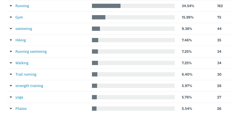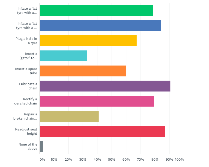 There were 469 responses to this question, which shows that most women mountain bikers in South Africa do more than just ride mountain bikes. We were a little surprised to see running as the most popular alternative to mountain biking. Road cycling came in at No. 12 with 4.40%.