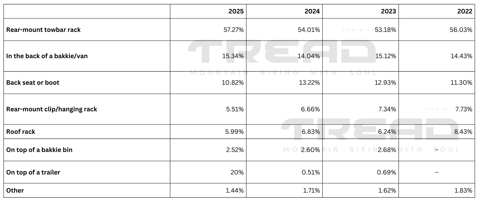Based on the stats from the previous year, it looks like the ‘back seat or boot’ crowd have upgraded to ‘rear-mount towbar rack’.