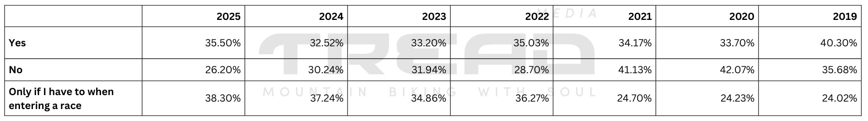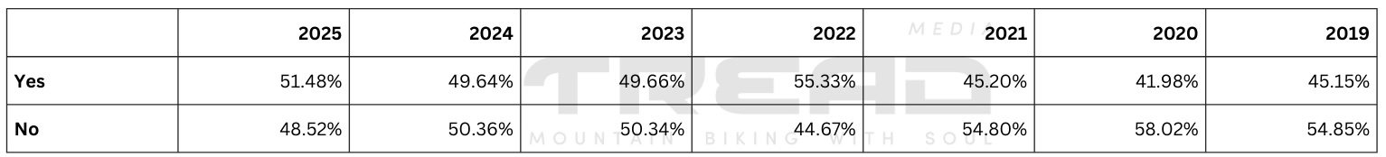 The 2025 South African Mountain Bike Survey, presented by Garmin attracted a total of 2 504 respondents. Of the that number, a total of 2 137 answered every one of the 70 questions (not every question relates to everyone). Here’s the first of four reveals about what South African mountain bikers prefer when it comes to racing, training, sports supplements, motor car brand, bike rack brand, media consumption and more…