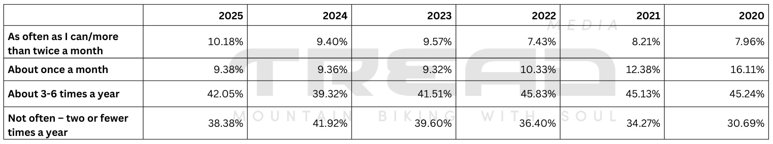 Based on these stats, it seems many mountain bikers stick with mountain biking after discovering it. This is both good to know and not really surprising.