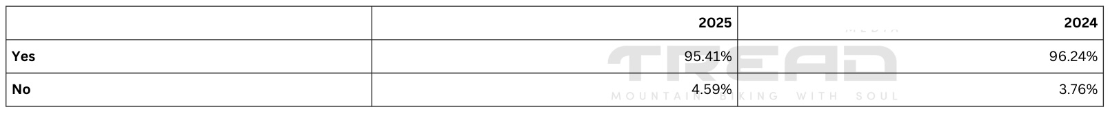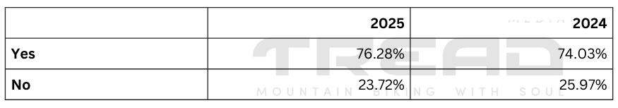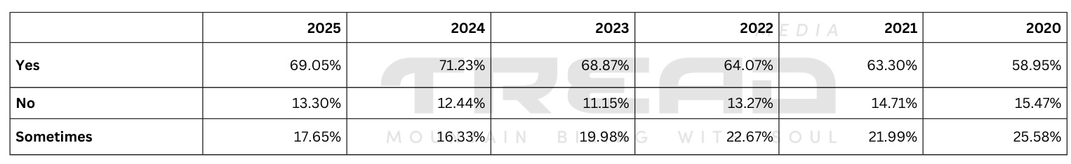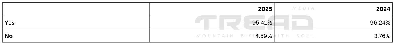 The first time since 2022 that more than half of the respondents belonged to a cycling club.