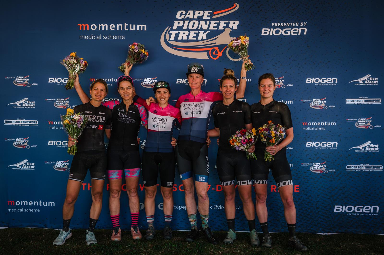 The Efficient Insure Infiniti Racing combination extended their general classification lead by 10 minutes, taking their overall advantage to 27 minutes and 18 seconds over Yolande de Villiers and Stephanie Wohlters. The Clickatell team, of Ila Stow and Robyn Williams, remain third; while Nicola Freitas and Juanita Mackenzie, of Action Cycles Scotrho Brokers, leapfrogged the Echotel Communications squad into fourth.