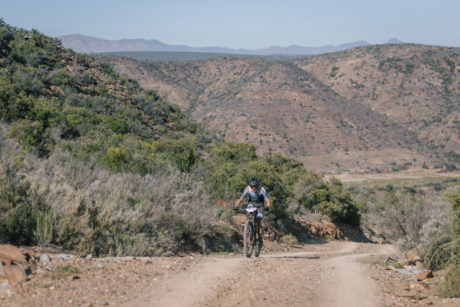 The 92 kilometre stage, which featured 1 650 metres of climbing flirted with the Kammanassie Mountains. It did however not venture into the wild depths of the range, but remained on the fringes. Even that was enough to provide punctures aplenty however, and ensure a tough start to the stage with a loose and rocky climb from the off.