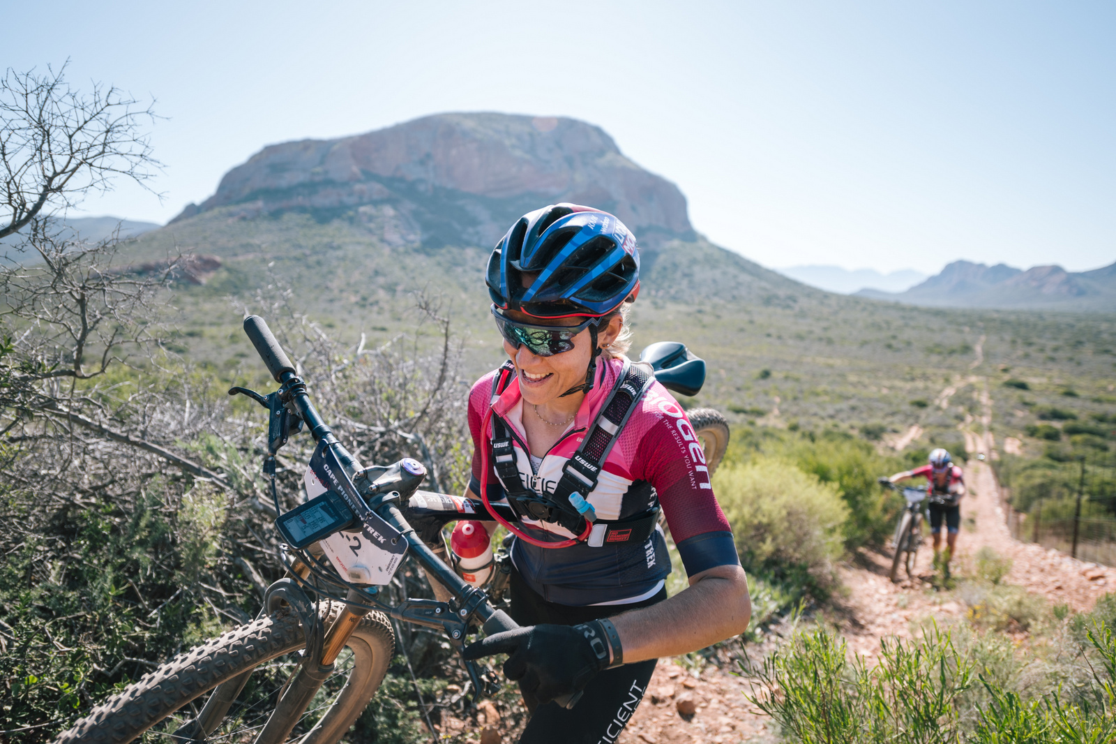 “My legs take an hour to warm up, so that first climb wasn’t ideal,” Theresa Ralph recalled, having wrapped up a third stage win for the Efficient Insure Infiniti Racing team alongside Kim le Court. “It was steep and rocky. Yolande [de Villiers] and Stephanie [Wohlters] were right there with us for that climb, which made the racing really exciting. Once we got out of the technical terrain onto the jeep tracks and later on the district roads we were able to open up a nice lead again.”