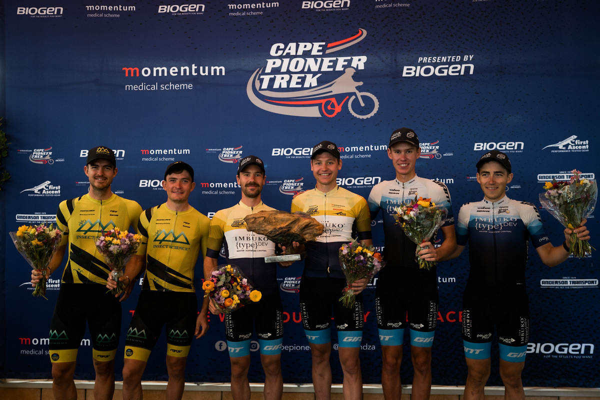 Arno du Toit and Keagan Bontekoning reached the Queens Hotel and the final finish line in a time of 2 hours, 24 minutes and 30 seconds. This was 2 minutes and 16 seconds faster than Joubert and Pieter du Toit, but that still left Imbuko {type}DEV A with a 2 minute and 21 second general classification lead. Thus, the men who started the day in yellow also finished it atop the final podium.