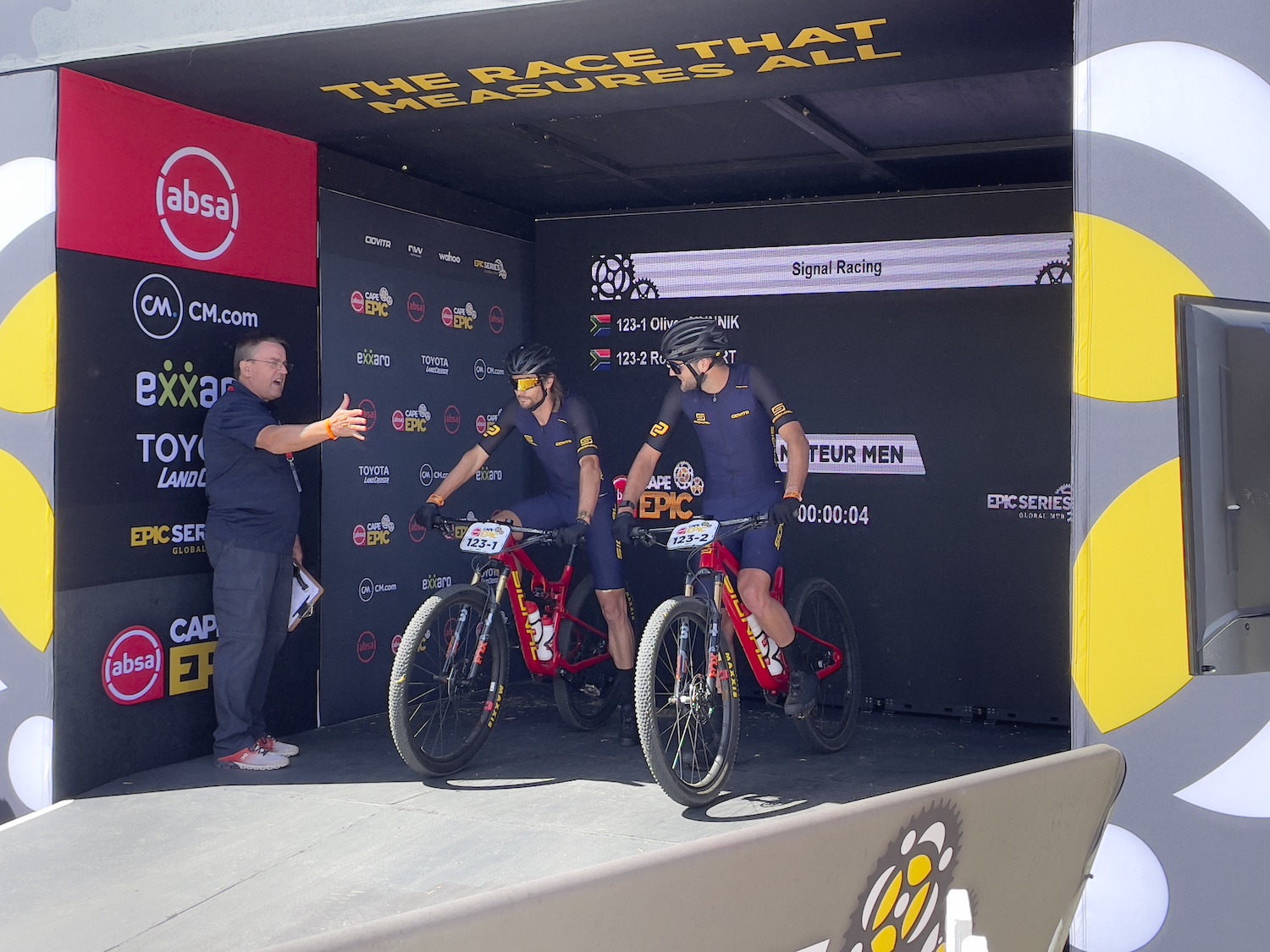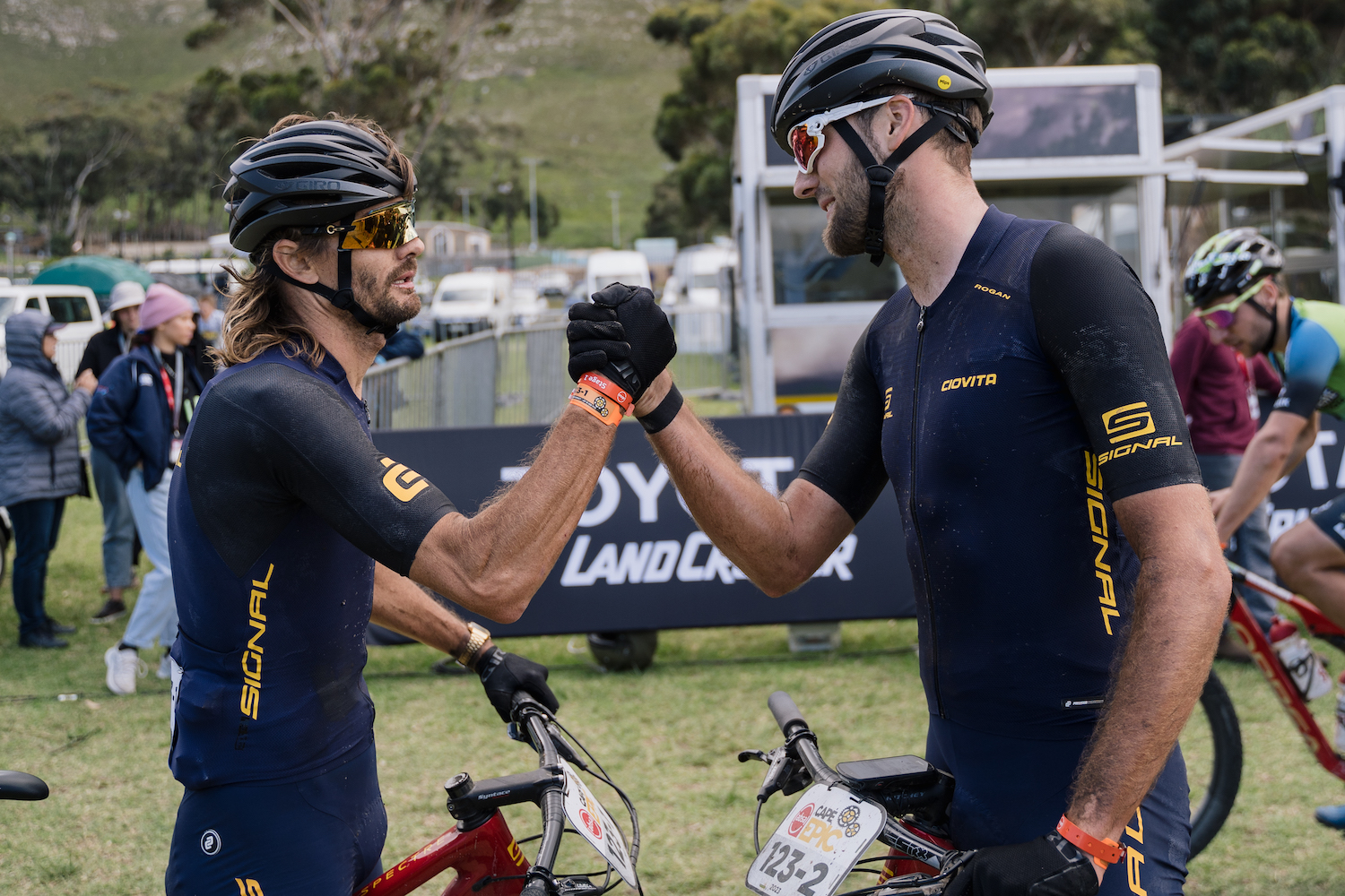 One fast-paced, high-intensity prologue time trial and one full brutal classic stage. That’s in the bank now and Team Signal Racing’s Oli Munnik and Rogan Smart are relaxed and smiling after two days of racing the 2023 Absa Cape Epic. While they were recovering and preparing for the 116km Stage 2, we fired some questions their way. Here’s what they said.