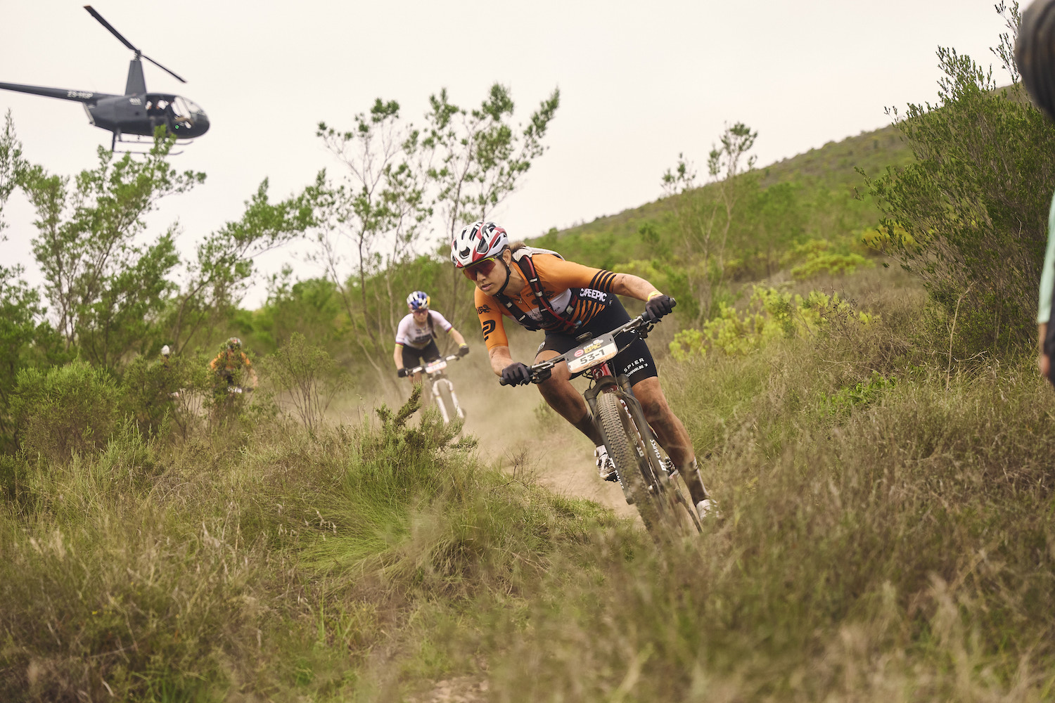 The men’s race also had its fair share of drama when Wout Alleman (Buff-BH) team crashed heavily on the treacherous Middelplaas descent, holding up South African Tristan Nortje, who lies second overall with partner Matt Beers (Toyota Specialized Imbuko). Nortje had to chase back to his partner as the all-South African team fell behind the leading two teams of Gaze and Schwarzbauer and overall leaders Luca Braidot and Simone Avondetto (Wilier-Vittoria) to finish third.