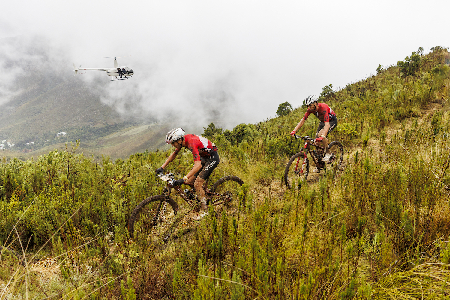 By the time the race had summited the long Lourensford climb and reached the Eden trails of Stellenbosch, three teams remained with former Olympic bronze medallist Valero setting a furious pace. But the Italians were eager to get a stage win, and as the group entered the final section of singletrack 3km from the finish, Avondetto darted ahead. It looked to be the race-winning move, but moments later, he crashed off the trail. Quickly remounting, the Italian finally rejoined his partner up front, and the two recovered to open up enough of a gap over the pursuers to have time to celebrate before the finish.