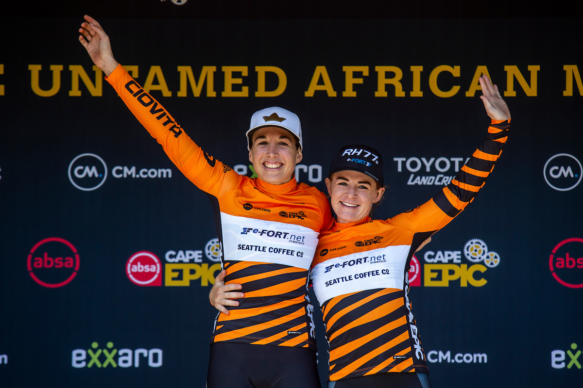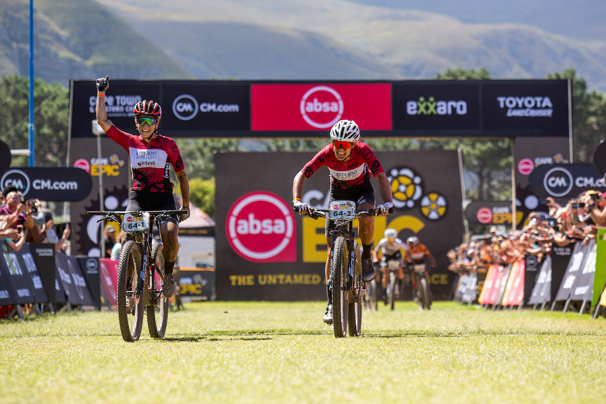 There were no changes in the overall category leads of the Absa Cape Epic after Stage 2, with both the men’s and women’s leaders holding on to their yellow and orange leader jerseys respectively, after 116km of racing on Tuesday, 21 March. In the Men’s race, Matt Beers and Christopher Blevins of Toyota-Specialized-NinetyOne (pictured) won Stage 2, while in the CM.com Women’s Category, Vera Looser and Kim le Court (Efficient Infiniti Insure) took the honours. Orange leader jersey wearers Candice Lill and Amy Wakefield (e-FORT.net | SeattleCoffeeCo) finished third on the stage and retained their five-minute gap overall at the top of the Women’s Category.
