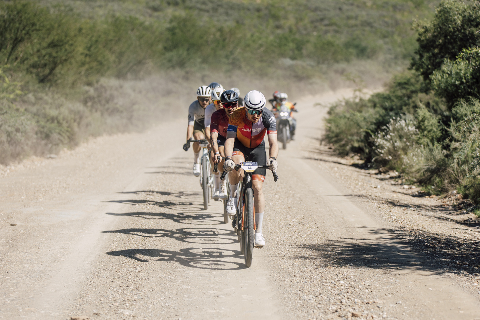 Sensing an opportunity, the women in third and second on the general classification pushed on as soon as they reached the end of the Neutralized Zone. Utilising the strength of several powerful age category male riders, they worked with a group to maximise their potential gains. Yet, as had been the case in the men’s race, the race leader was able to match the firepower of a group. Trouwborst found an ally in Jan Withaar, who had stopped to fix a mechanical earlier in the stage, and worked with the South African to gain time on the group up the road.