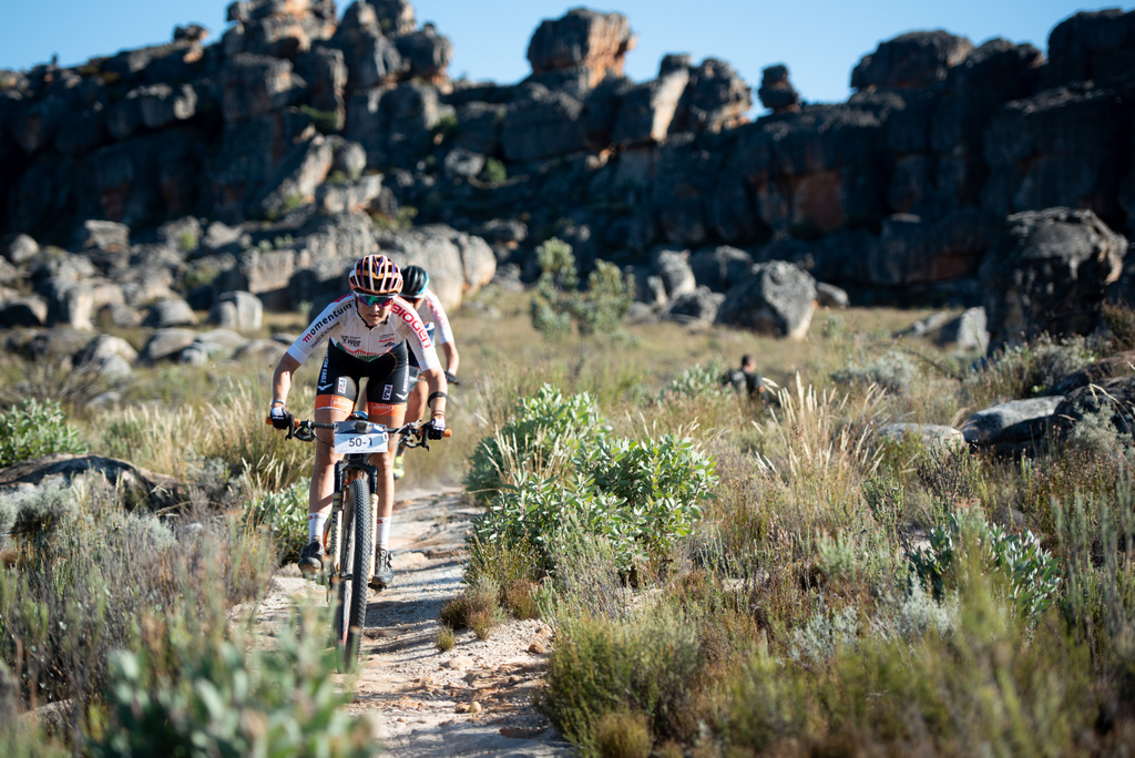 The Momentum Medical Scheme Tankwa Trek presented by Biogen saved the best for last. Both in terms of the trails and the result for the champions, the Bulls Heroes and Faces CST. The men’s yellow jersey wearers further secured their grip on the First Ascent leaders’ jerseys by racing to third on the day; behind their support team and the stage winners, Cannondale Factory Racing. While the women’s race winners secured victory the hard way, winning the stage in fine fashion.