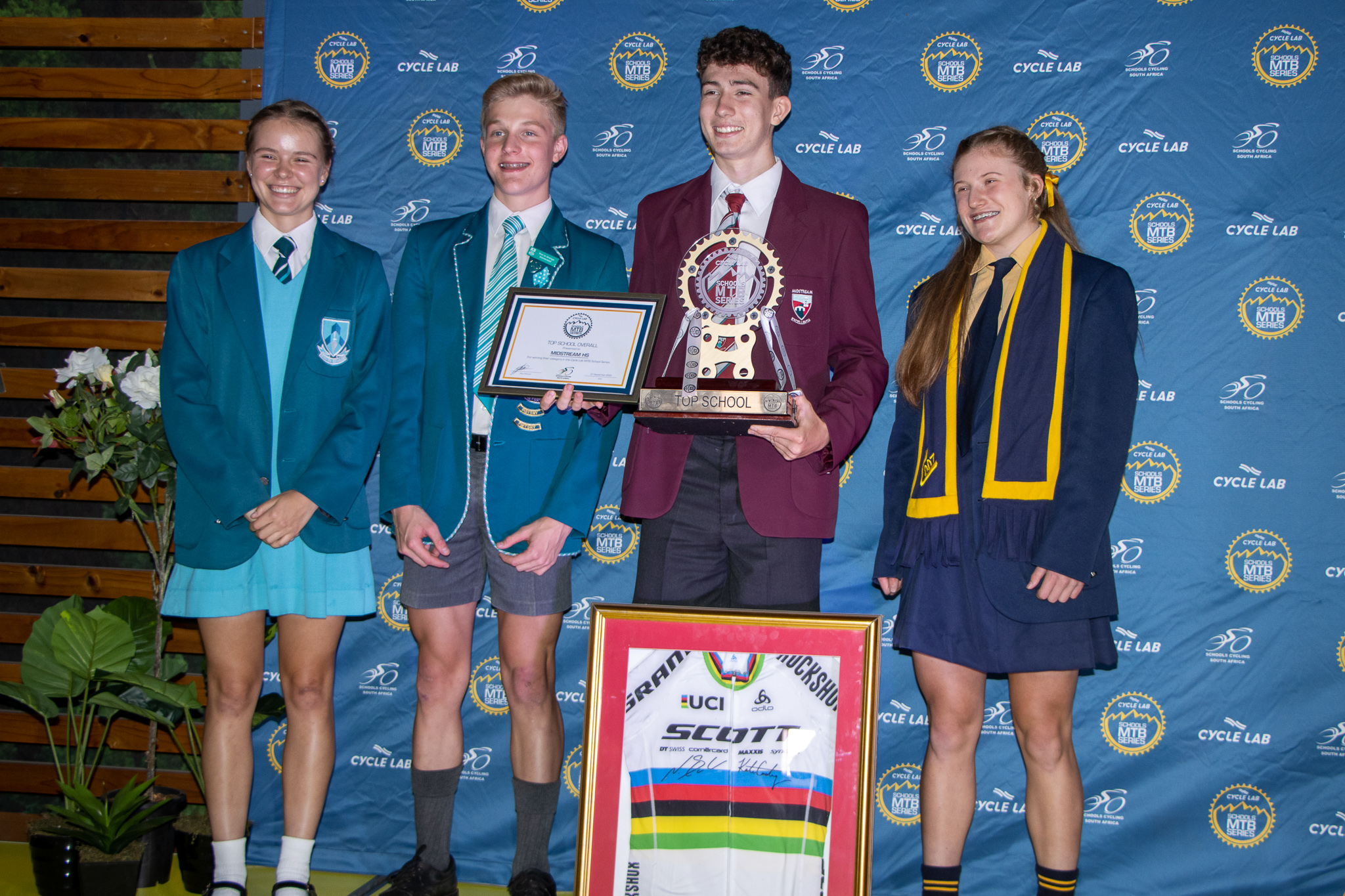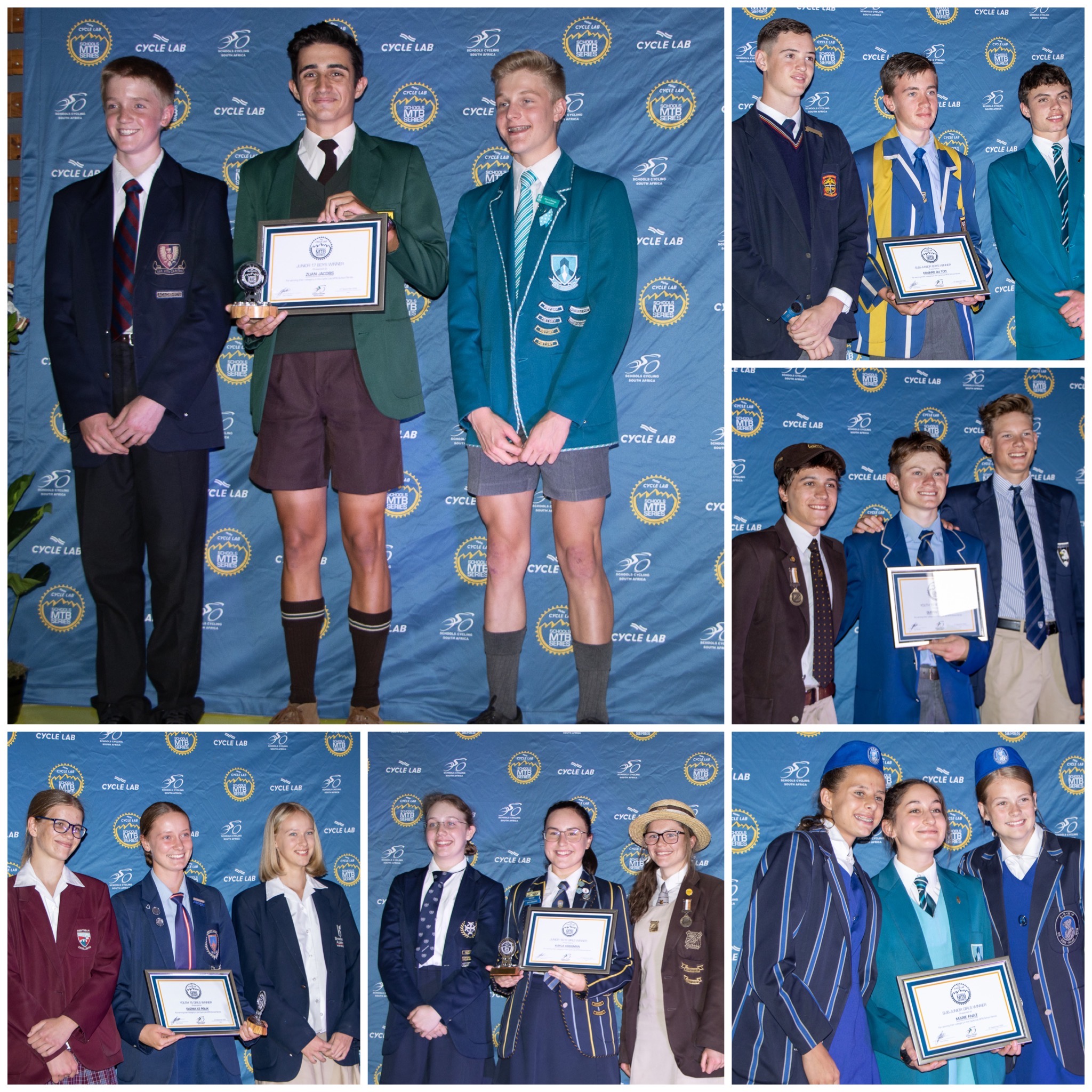 Every entrant received a R150 Cycle Lab voucher per event (their entry fee equivalent). Individual series prize-winners each received a trophy, series cap, certificate and a Biogen hamper. The top boys and girls school each received a floating trophy, certificate and a signed jersey from Hatherly and Lill respectively, while the top school overall received a floating trophy, certificate and a SCOTT SRAM UCI World Champion jersey signed by Nino Schurter and Kate Courtney.