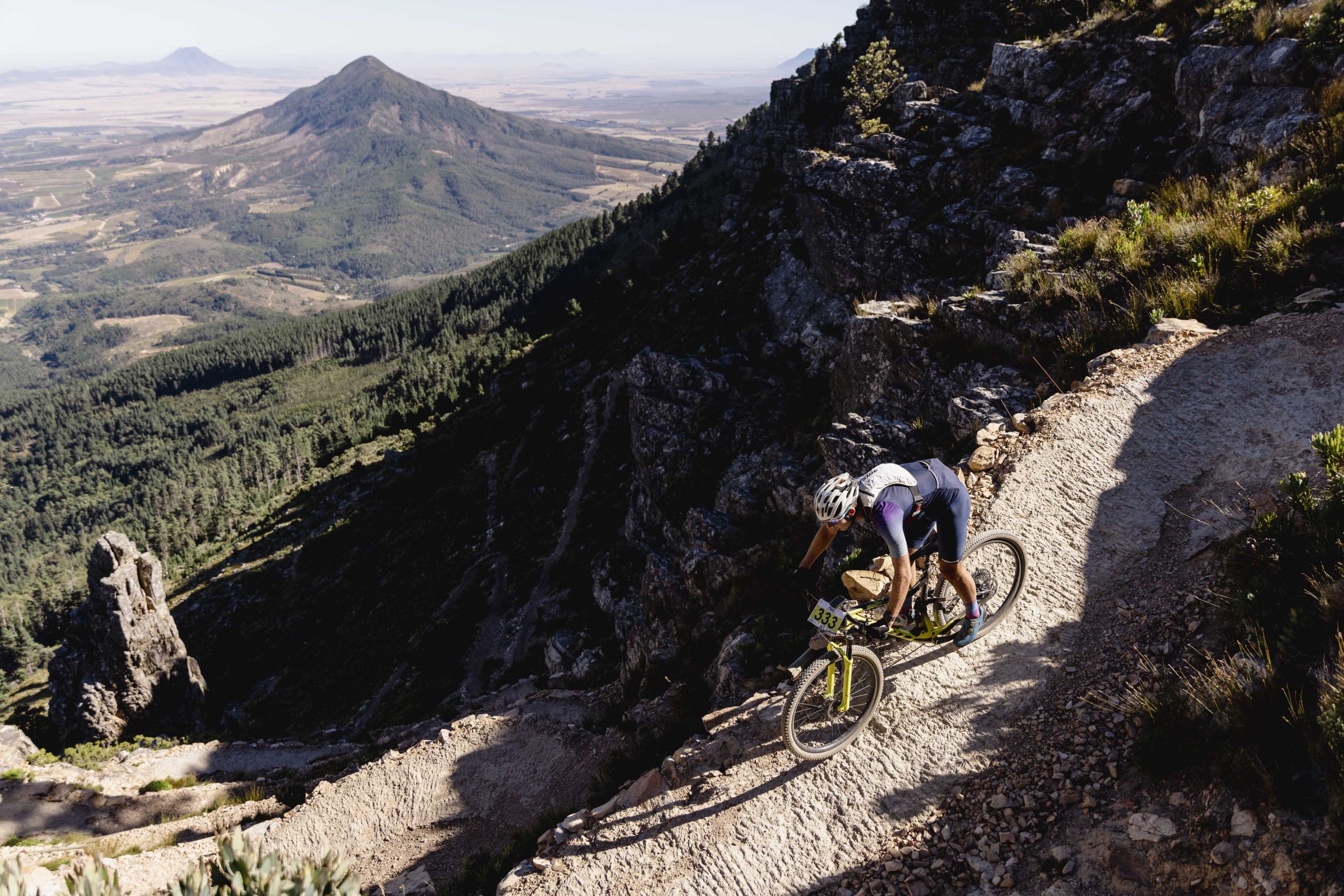 Joubert moved to the front up the switchback-ridden Aap du Huez trail, dropping Alleman and Pritzen in the process. Frischknecht would soon also fade from the group as the leading six neared the summit of the Canetsfontein Cliffhanger trail, a riding experience that draws riders from around the world for its indescribable views and expertly crafted switchback descent. Nortje ascended at a rate of knots opening up a 30 second gap over the rest of the field by the summit, pocketing R20 000 in the process as King of the Mountain!
