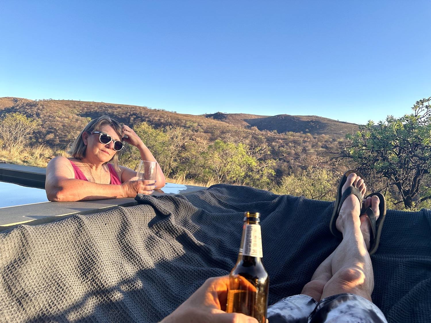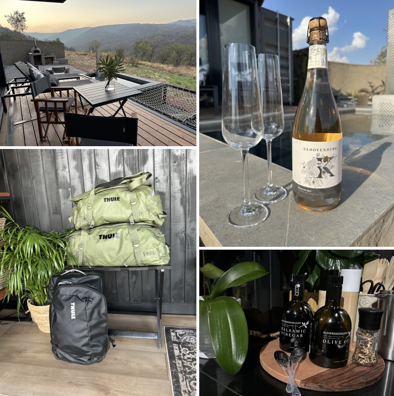 Being experienced with self-catering trips, we planned our meals and drinks well. For those that don’t plan that well, it’s around a 20-minute drive to a supermarket/butchery/bakery/bottle store should you need anything while staying there. Coffee pods, tea bags, sugar and rusks were provided as part of the package, as was our choice of a bottle of red or white wine – or champagne. We chose champagne because it happened to also be Joanne’s birthweek that we were celebrating.