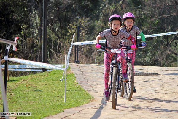 The ladies under 10 division added the perfect example as to why we make riders wear the armsleeves as the van Aswegen sisters Karli and Linda were identical twins in every sense of the term – the same looking bike, helmet, kit, shoes, the way they did their hair and were evenly matched at riding speeds! The arm sleeves were the only way for us to differentiate them!