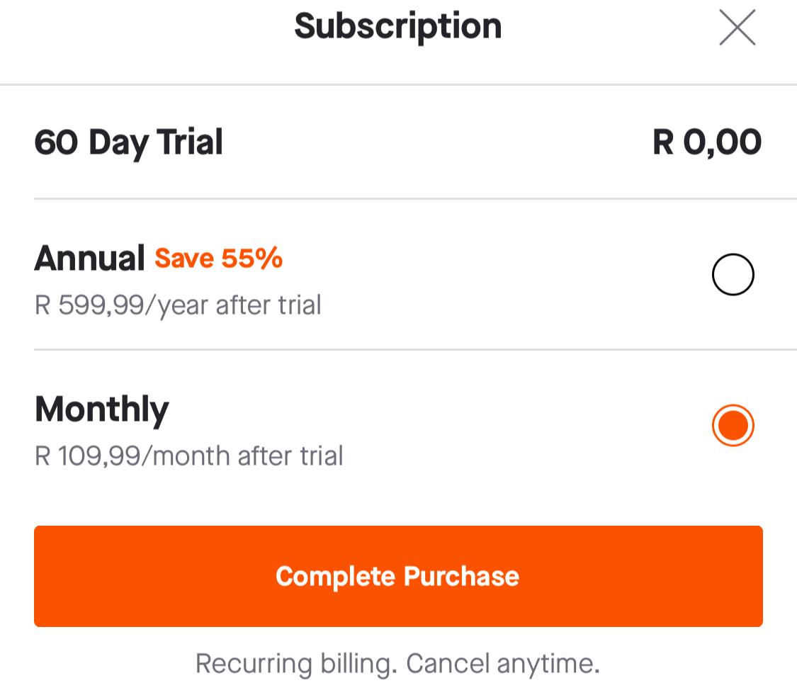 This was the paid-for service that gave you access to more data and ride analysis than the free service. You’re now a Strava User (free) or a Strava Subscriber, which costs you US$5 per month, but as a South African, budget R600 per year (once-off payment) 0r R110 per month (as at 24 May 2020). All current Strava members do get a 60-day Strava Subscriber Trail though, whereby you have to submit your credit card details upfront. If you don’t want to continue after your 60 days and don’t cancel, you’ll be billed. But you can cancel at any time.