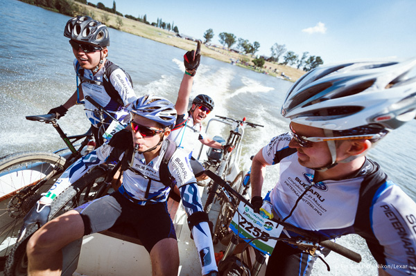 Team Garmin riders Yolandie du Toit and Ben Melt Swanepoel finished first in the mixed category (5:00.29). After opening a shaken bottle of sparkling water on the finish, du Toit and Melt Swanepoel were soaked as the refreshment sprayed uncontrollably. Du Toit laughed and said her day was “sizzling”, but the neutral stage was also about finding balance.