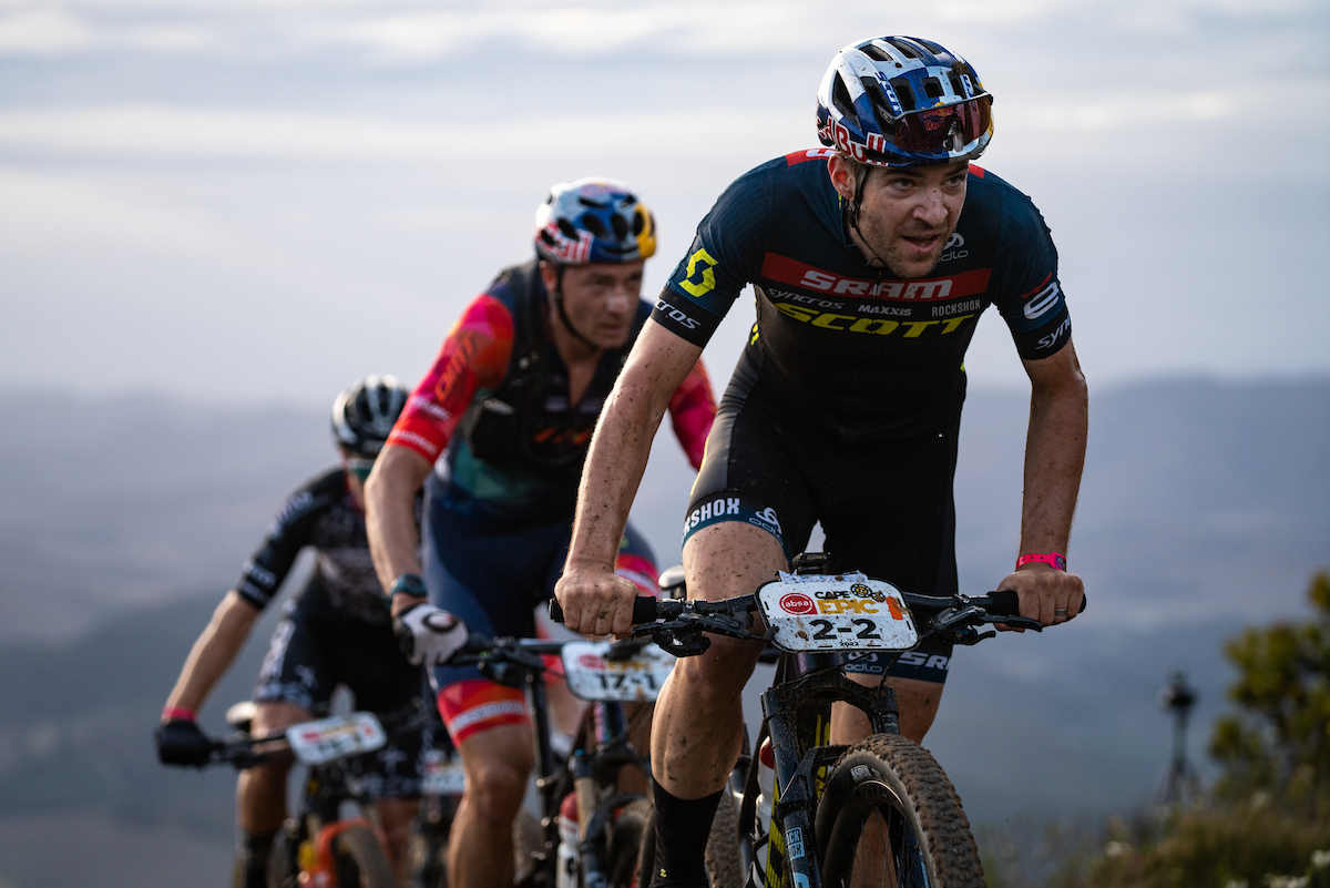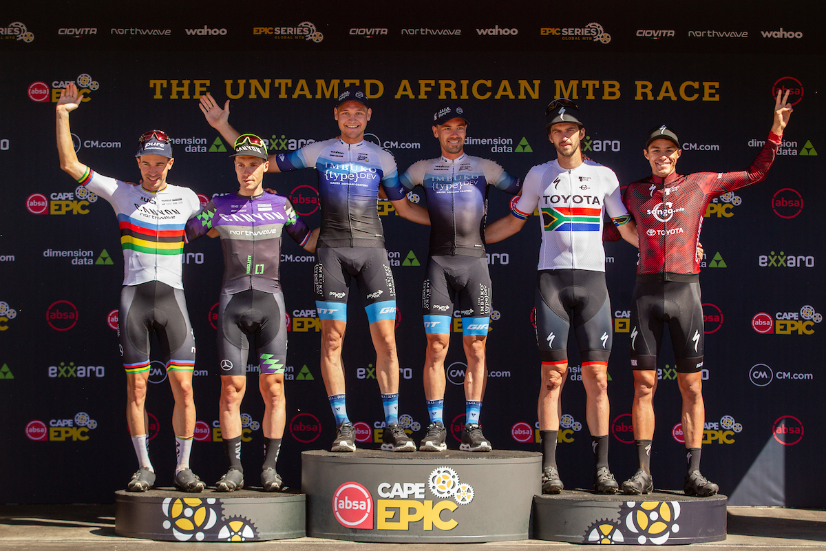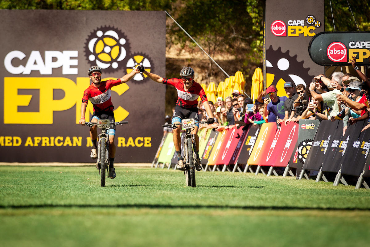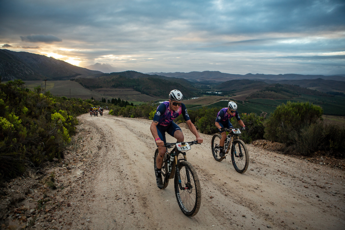 South Africa’s Marco Joubert and Pieter du Toit (Imbuko {Type} DEV) won the 115km Stage 5 of the Absa Cape Epic after a thrilling break 70km into the stage from Greyton to Stellenbosch.