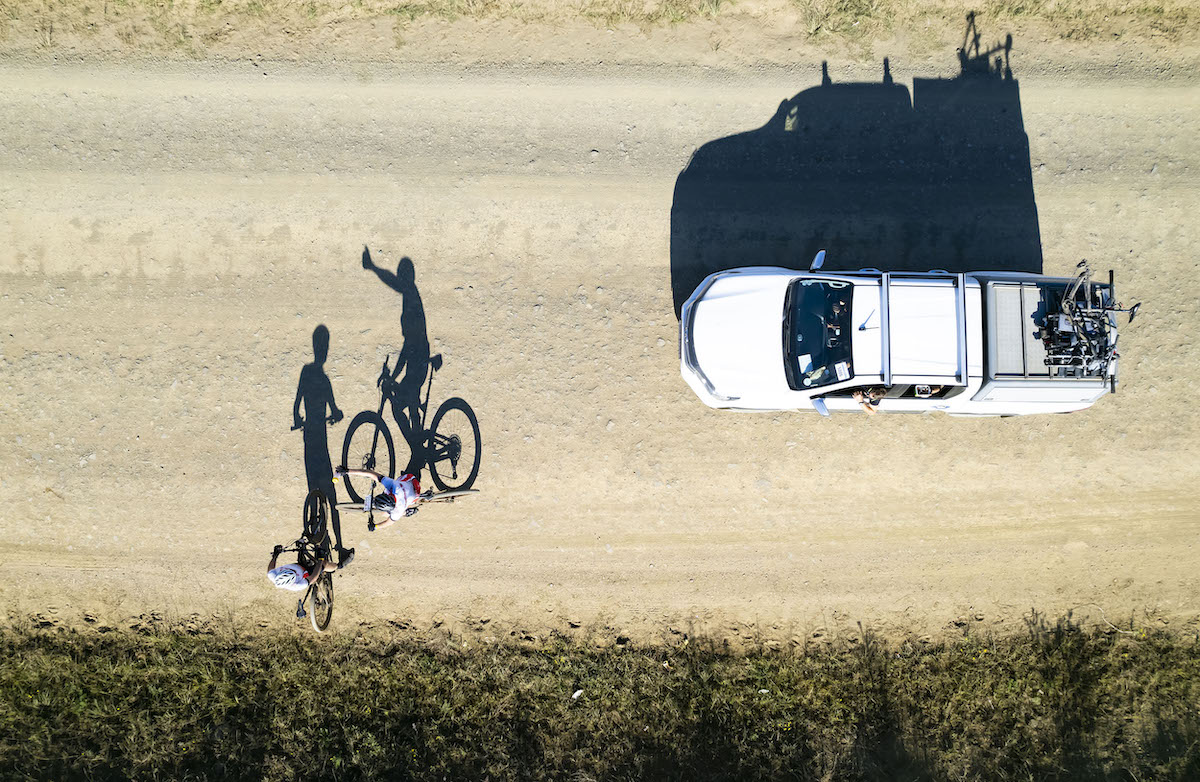 “You don’t do Iconic climb out of the valley, which is maybe a good thing, but you’ve got a pretty big stretch of district road climbing to do instead. Here your supporter vehicle is with you and they can play your favorite rock music, shout and scream, and give you some encouragement.”