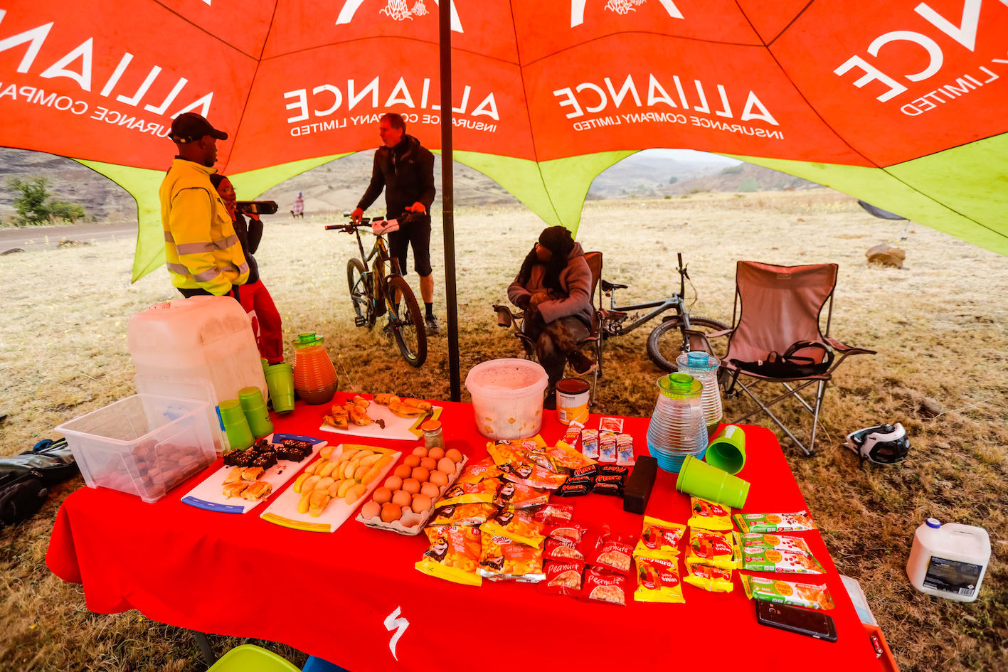 The awesome water points, sponsored by Alliance, which has been sponsoring every Lesotho Sky since its inception in 2011, were well stocked with small potatoes, bananas, hard-boiled eggs and then all the other snacks and energy bars including the awesome choc brownies from Maseru Pick n Pay! I did sample all these goods and can confirm they pass the quality check and kept me smiling and powered up. My body that is, not my e-bike!