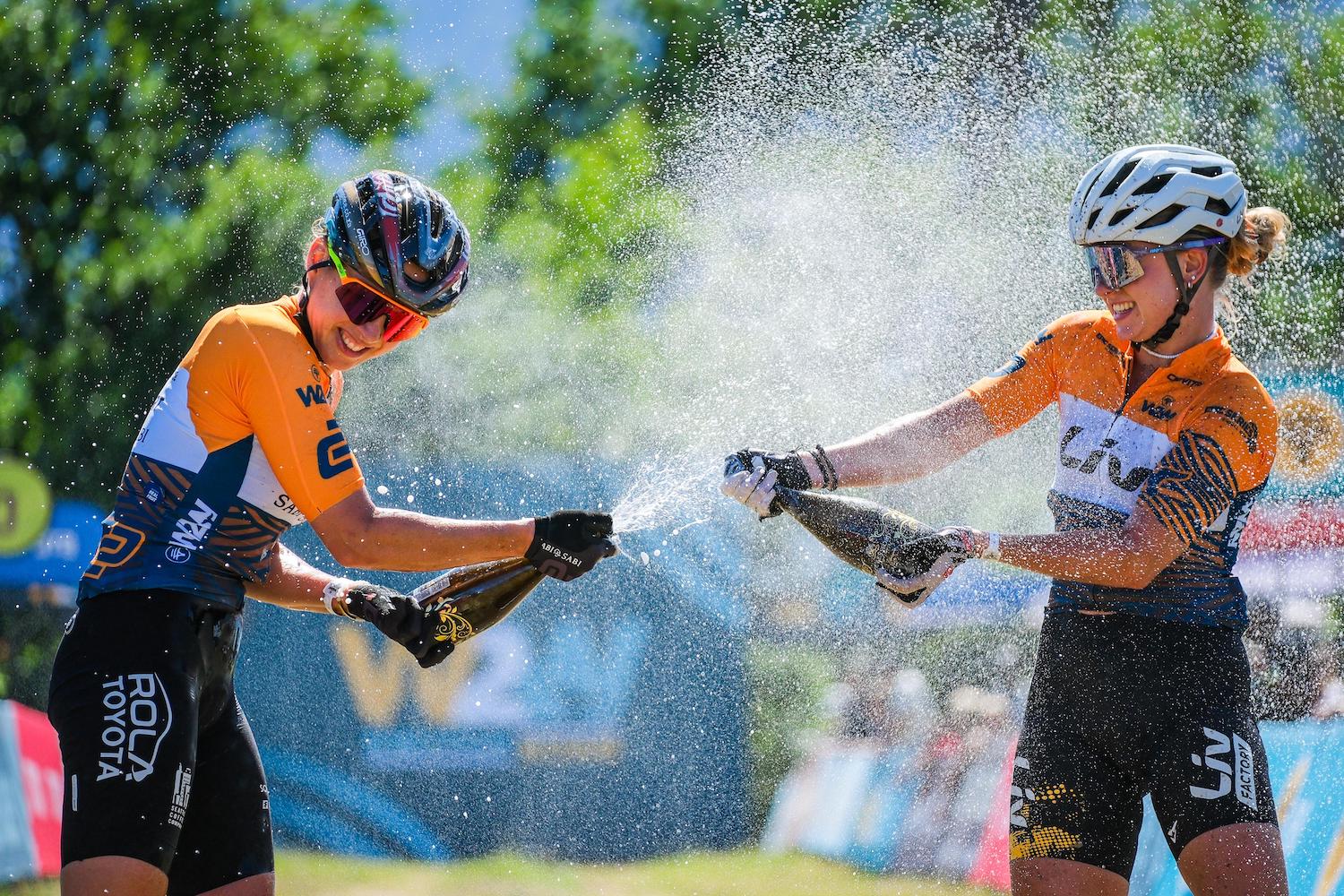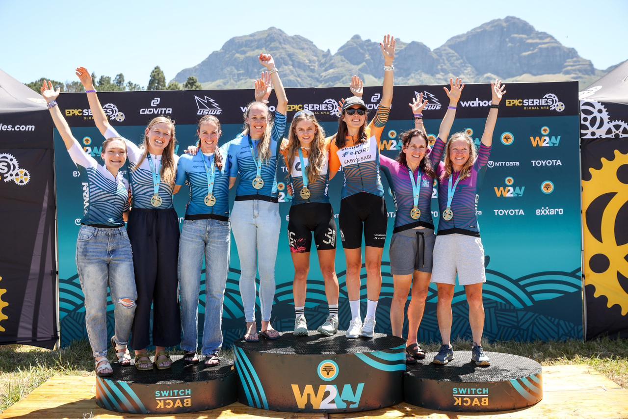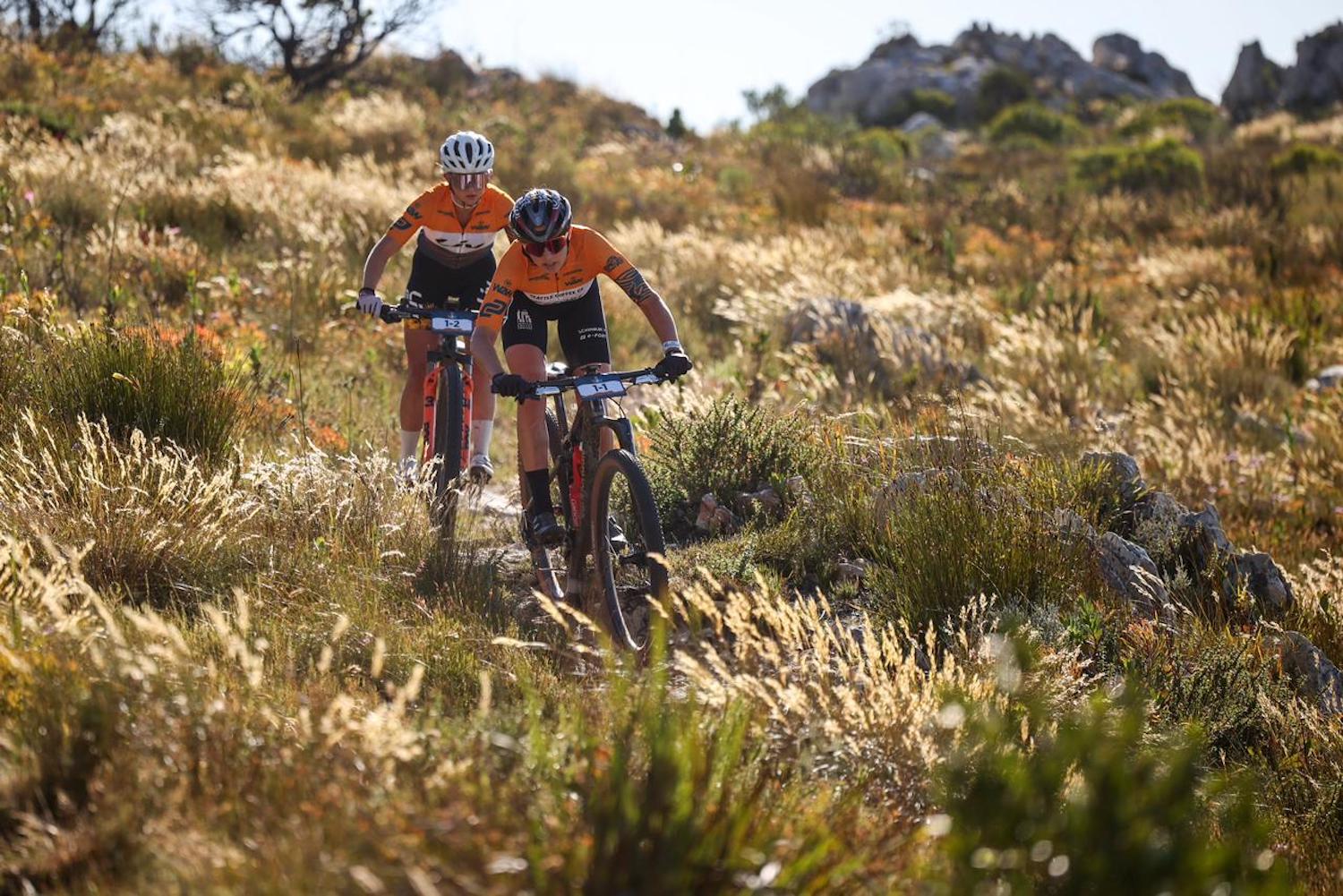 It was not all downhill to Somerset West and the final finish line. There was 1 250 metres of climbing to conquer too, which helped the women in the Orange CIOVITA jerseys distance their rivals while climbing the A to Z trails from the Eikenhof Dam to the summit of the Gantouw Pass. Lill and Jacobs used their singletrack speed to create separation between themselves and their nearest rivals, Margot Moschetti and Claudia Peretti. Sarah Hill and Robyn de Groot had been distanced around the 15-kilometre mark already and were focusing on conserving their podium position.