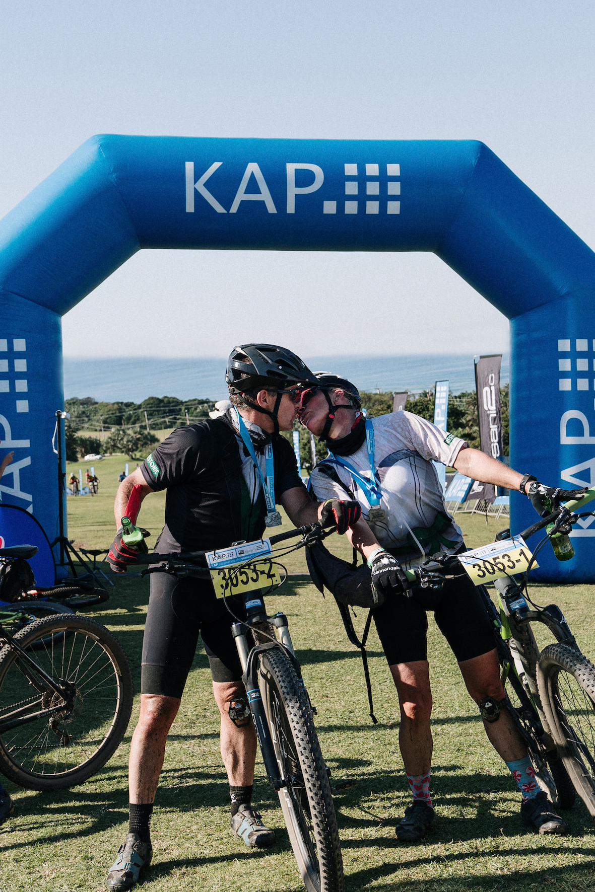 A sani2c finish to remember for Attie and Marinda who exchanged their wedding vows at the finish of the KAP sani2c Adventure. | Photo: Jenna Bird