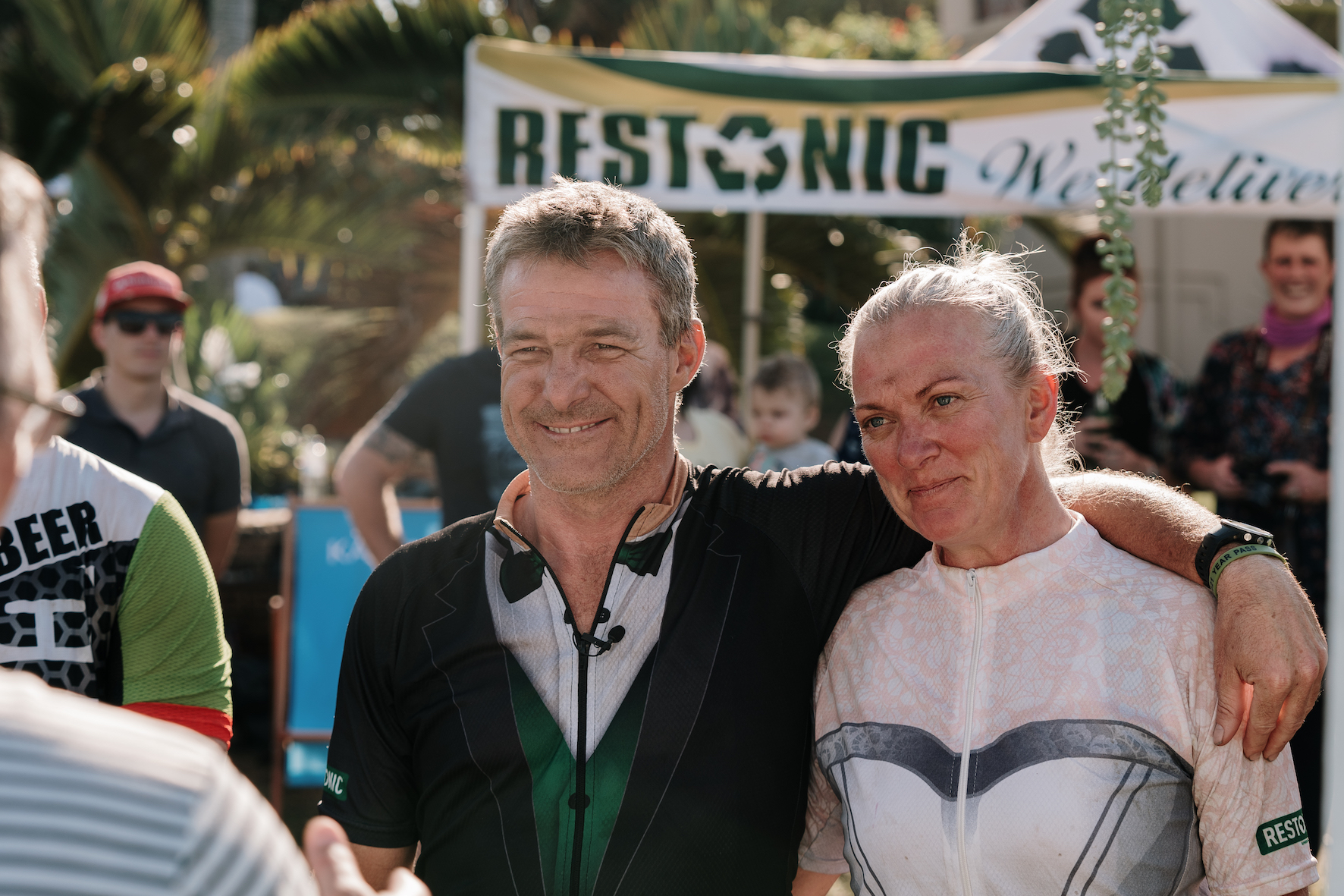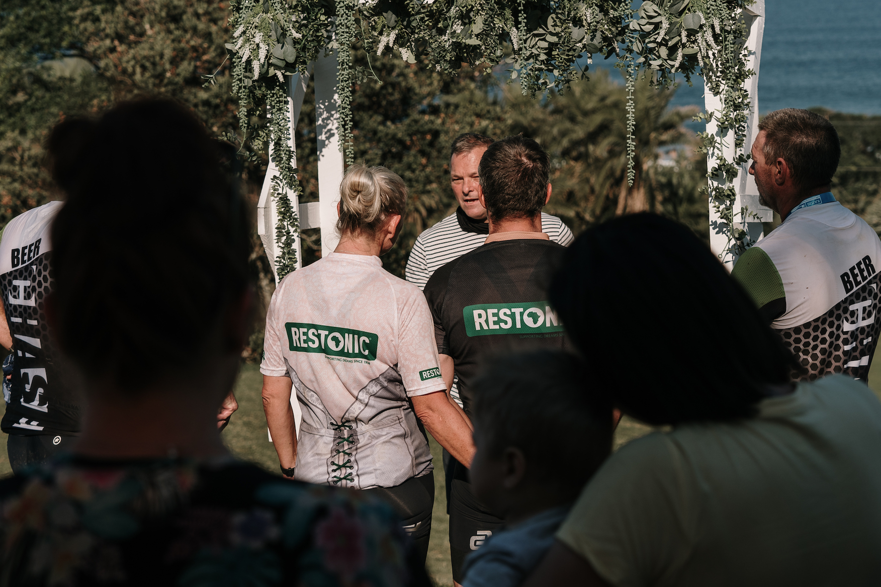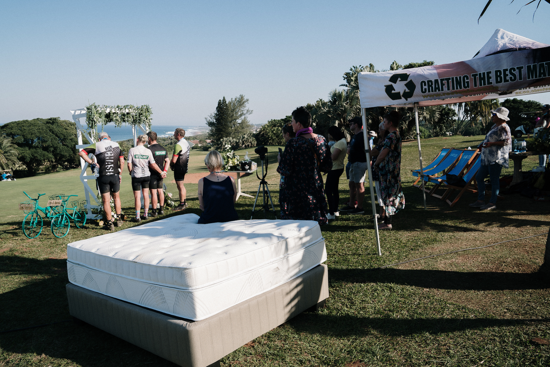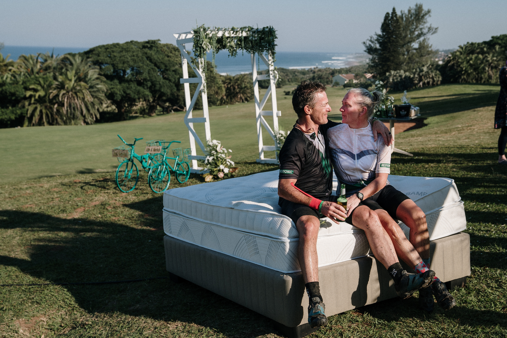 Restonic SA also sponsored a wooden wedding arch, which was set up near the finish at the Scottburgh Golf Club, wedding décor for the arch, sparkling wine and snacks, and a brand new Restonic iDream queen-size bed valued at R16 000 for the couple, custom-embroidered embroidered with the words “Just Married”.