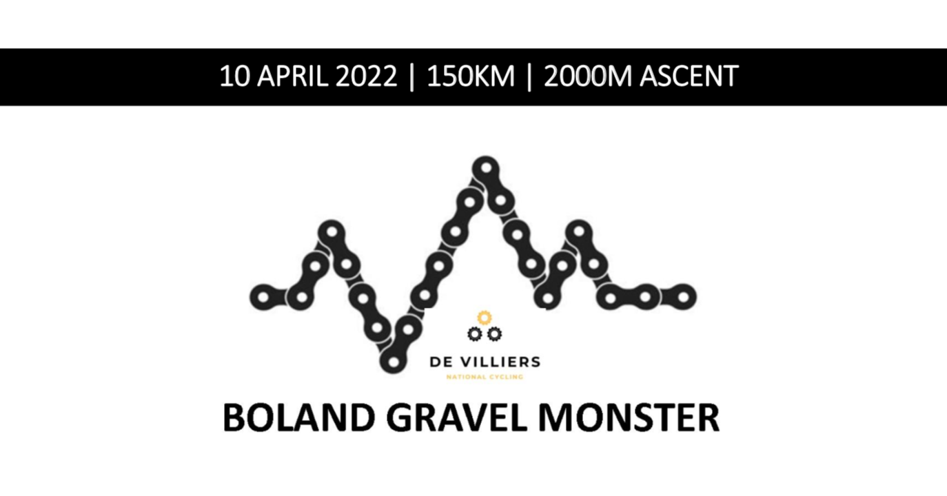 On 7 January 2022, De Villiers National Cycling announced the launch of the Boland Gravel Monster, a 150km extreme gravel bike race, which takes place on Sunday 10 April 2022 in Wellington. There’s a total of 2000m of vertical ascent and an entry limit of just 1000.