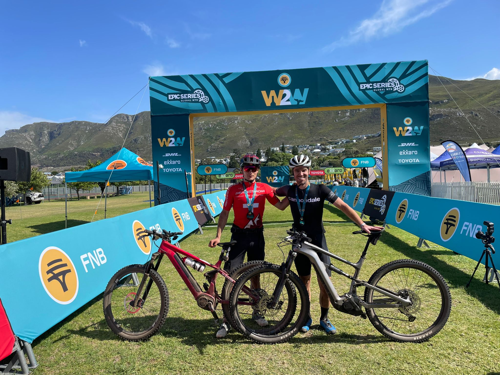 “It was flat box from the start today! The Rossburg team, who were third on GC, 11 minutes behind us, looked keen to make up some time and set a really quick pace. After struggling again early on because of our bikes’ pedal assist limiters, we managed to catch the Toyota Specialized guys in the singletrack and rode with them for a lot the stage. We all caught and passed the Rossburg guys at about 25km and then it was a dice with Bobby (Behan) and Giniel (De Villiers) for the stage win,” explained Nel.