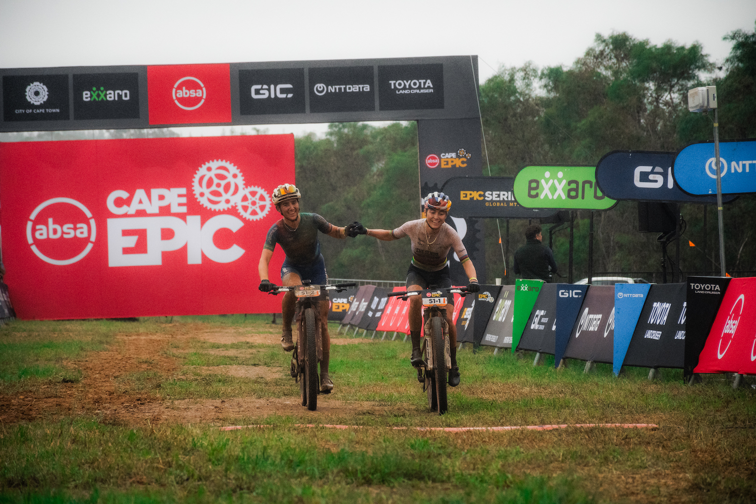 Pritzen and Stehli quickly opened up a lead of over a minute, which yo-yo’d as the chasing pack – which included the second-placed overall team of Braidot & Avondetto (Wilier-Vittoria) – tried to work together to bring the escapees back. But with a strong tailwind pushing the riders towards the finish near Greyton, the gap never closed sufficiently, and they held on to win by an impressive 1:10. It was a first Epic stage win for both of them.