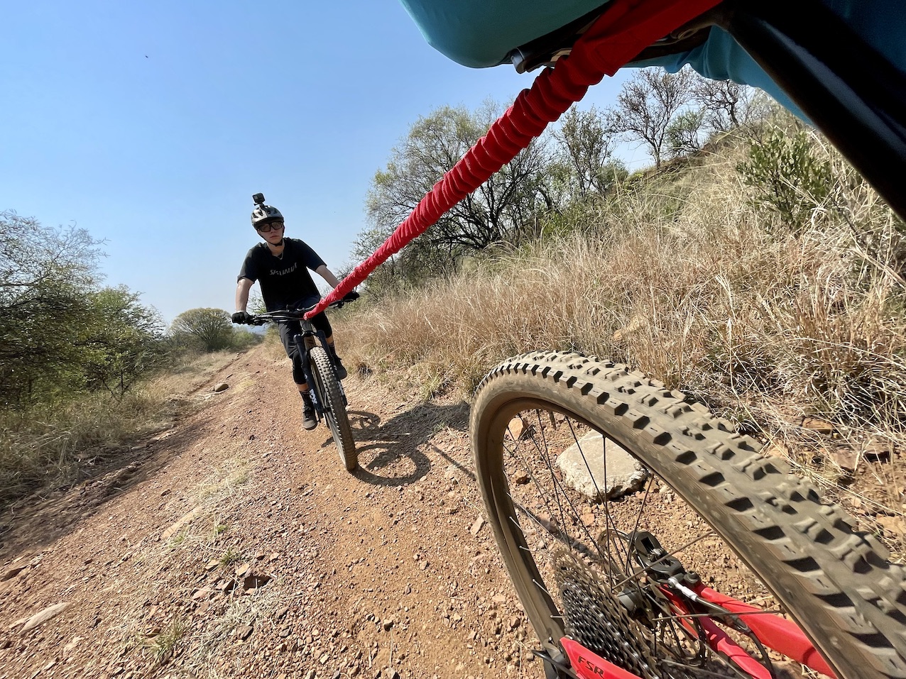 “That’s seems quite expensive for a simple tow rope,” someone said to Badenhorst, who he and Cade caught on a long climb during an Enduro practice session. “It’s a lot cheaper than eBike,” retorted Badenhorst as he rode away with an easy-breathing, grinning Cade in tow.