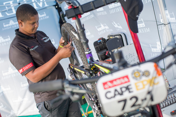 The tech zones at the Absa Cape Epic are scenes of great drama: shredded tyres, broken rims, snapped spokes, damaged derailleurs and more have been replaced or fixed at these points.