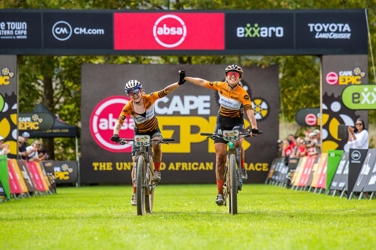 It was a banner day for South African mountain biking on the 100km Hermanus to Oak Valley Stage 3 of the Absa Cape Epic, with local riders claiming stage victories in the Men’s and CM.com Women’s categories on Wednesday, 22 March. Amy Wakefield and Candice Lill (e-FORT. net | SeattleCoffeeCo) – pictured – won the transition stage in the CM.com Women’s category, while Matt Beers won the Men’s Stage 3 race alongside American partner Christopher Blevins (Toyota-Specialized-NinetyOne).