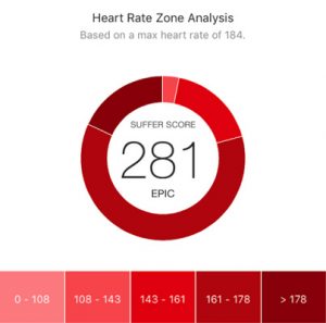 This feature provides a breakdown of the time spent in each of the major heart rate zones during your ride. A score is then calculated to give you an indication of how