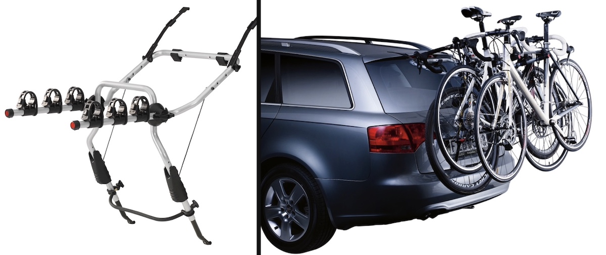 This rear-door mount rack uses a unique snap-on system for easy attachment and removal. The ClipOn High is unusual in that is uses the platform-style method usually found on towbar-mount systems. It raises the bikes high up so that the rear lights and number plate of the vehicle are visible. It’s ideal for station-wagon and hatchback vehicles and folds for efficient storage.