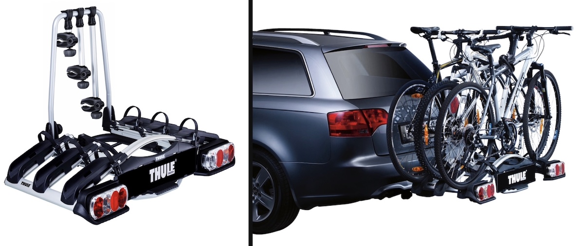 Towbar platform racks (where your bike stands on the rack) are the most popular because of the ease of use and high level of stability. A towbar is the obvious prerequisite. If you’re going to be doing a lot of travel with your bikes, fitting a towbar and purchasing a towbar platform rack is a good investment. All the Thule towbar platform racks below have a bike clamp lock and a rack lock to the towbar. It’s some security, but we are still in South Africa, so be mindful of this when travelling and parking.