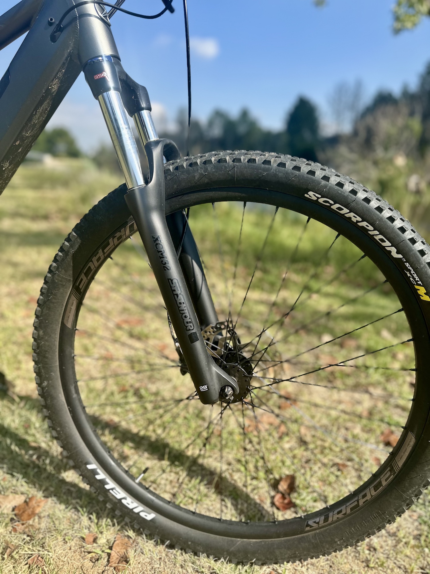 This was our first experience with Pirelli mountain bike tyres. At 2.25 inches wide – narrower than we typically ride – they proved surprisingly grippy when needed and rolled efficiently on hardpack and gravel.