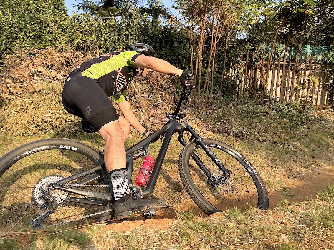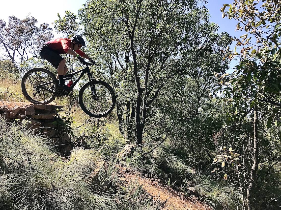 Where to start… Okay, if there’s a smooth surfaced, predictable climb, you can lock the rear shock and fork out completely. We did this infrequently, actually only really on tar (riding to and from the trails) and on the gravel road climbs at Northern Farm. The rest of the time the suspension was open and fully active. On gritty climbs this felt good and climbs that were technical or very technical, it felt flippen amazing!