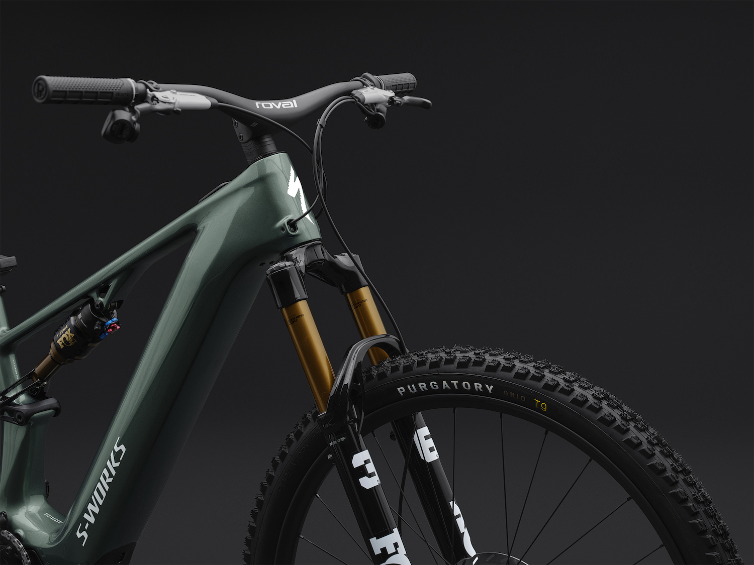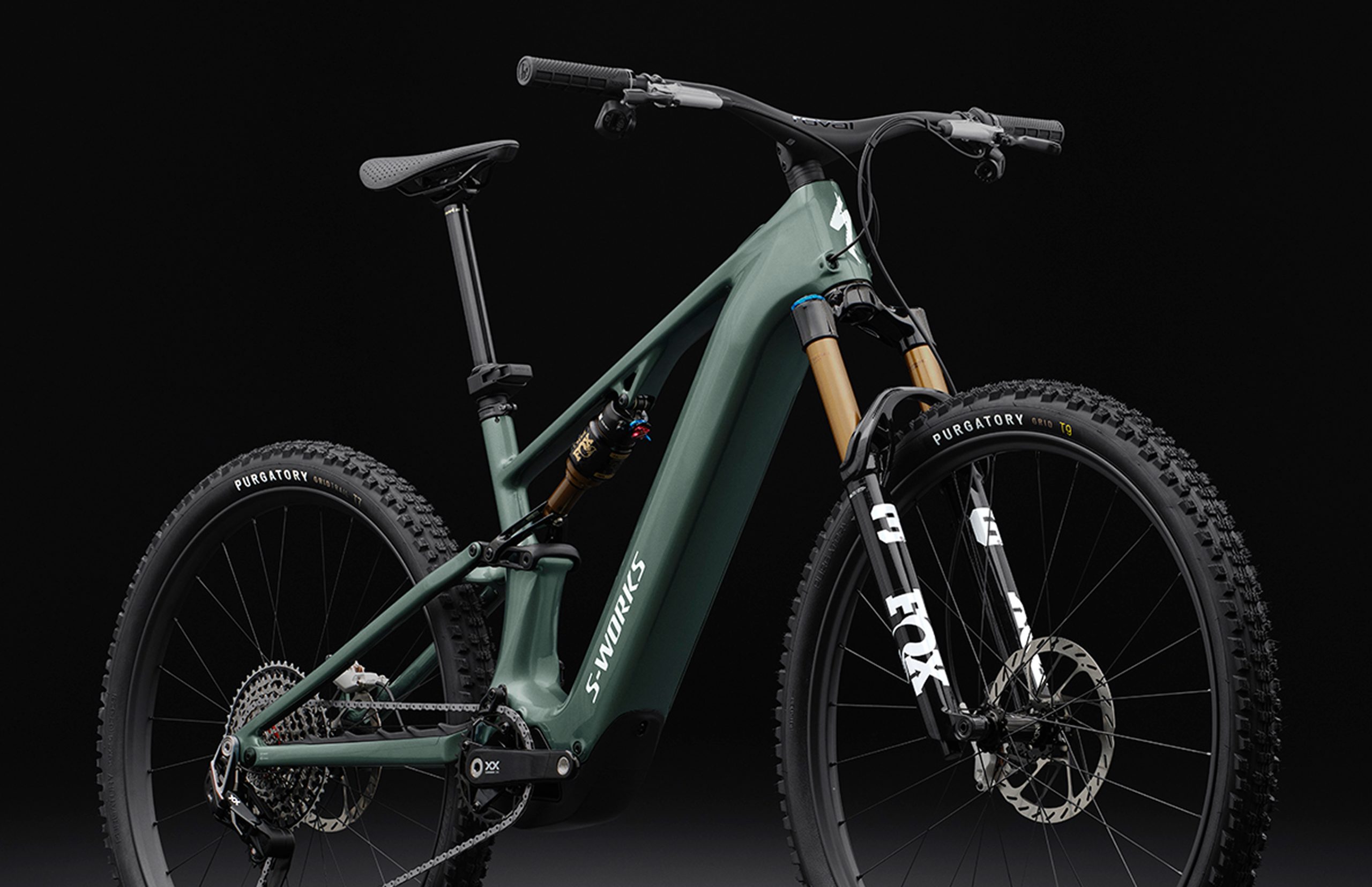 Unlike the mullet configuration of the Levo 4, the Levo R runs full 29-inch wheels for maximum momentum and speed retention. It rolls on Roval Traverse SL II wheels and is fitted with Specialized’s Purgatory GRID tyre up front and GRID Trail at the rear – faster-rolling and lighter than the gravity-focused Butcher GRID Gravity rubber on the Levo 4 They’re grippy. But they’re built for speed.