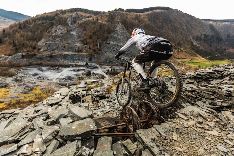 Former Downhill world champion, Gee Atherton, is not afraid of a fresh challenge. After recently conquering the Ridgeline , he turned his focus to a steep, gnarly old slate quarry. Sharp, loose and unpredictable is what slate stone is to ride – and that’s on a mild gradient. But unperturbed, Atherton finds his way down a ridiculously steep decline and finishes with a massive 24.5 metre gap at the bottom!
