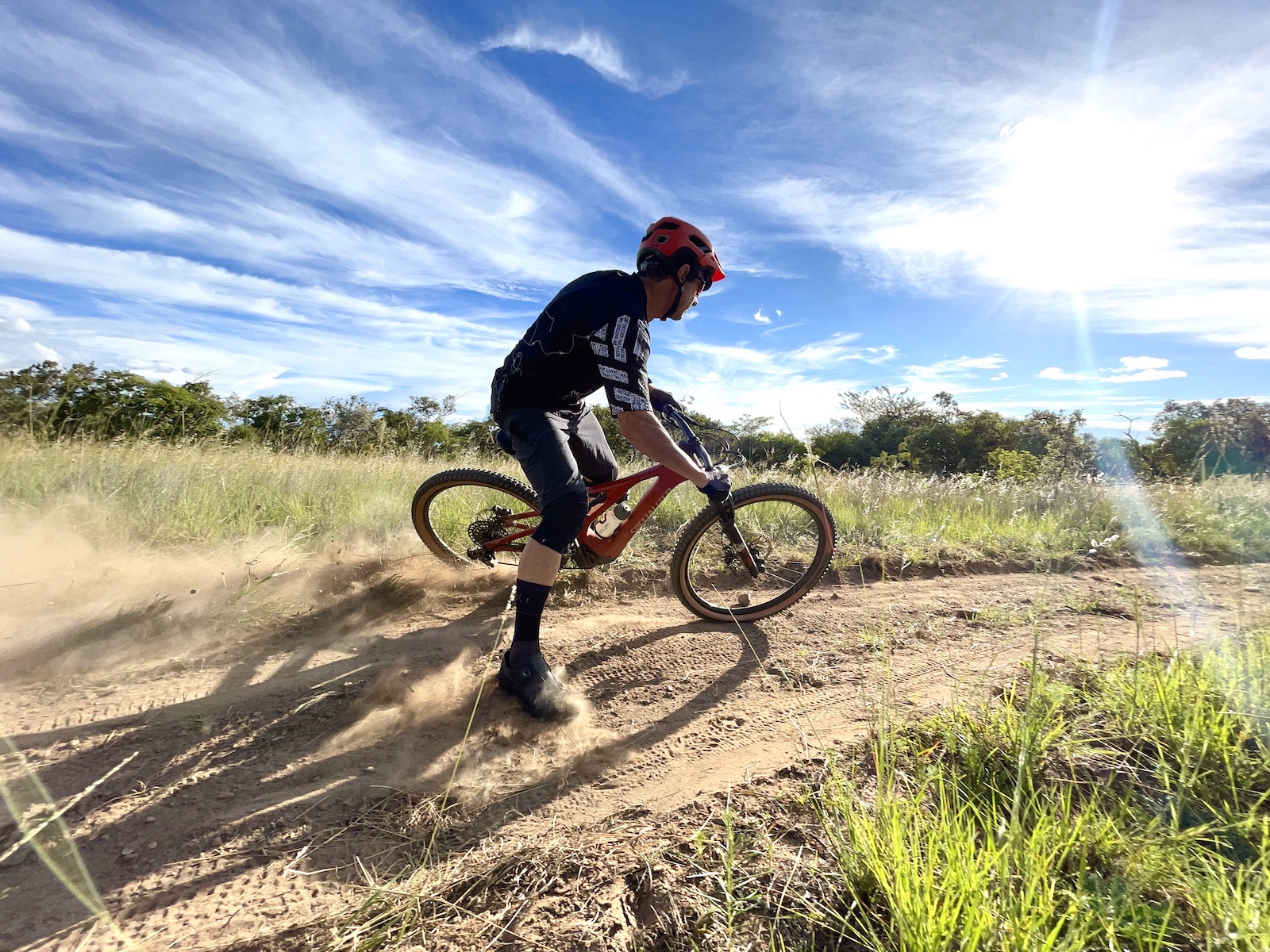 I snapped this photo on 13 March 2022. The rider is Gauteng’s top female Enduro racer, Julia Kotze and the trail is called Morphine. It’s a pretty gnarly 5km descending singletrack trail at Tranquilitas in Mpumalanga. What you can’t see in this pic is that Julia doesn’t have a chain. The day before was the first round of the 2023 Mpumalanga Enduro Series.