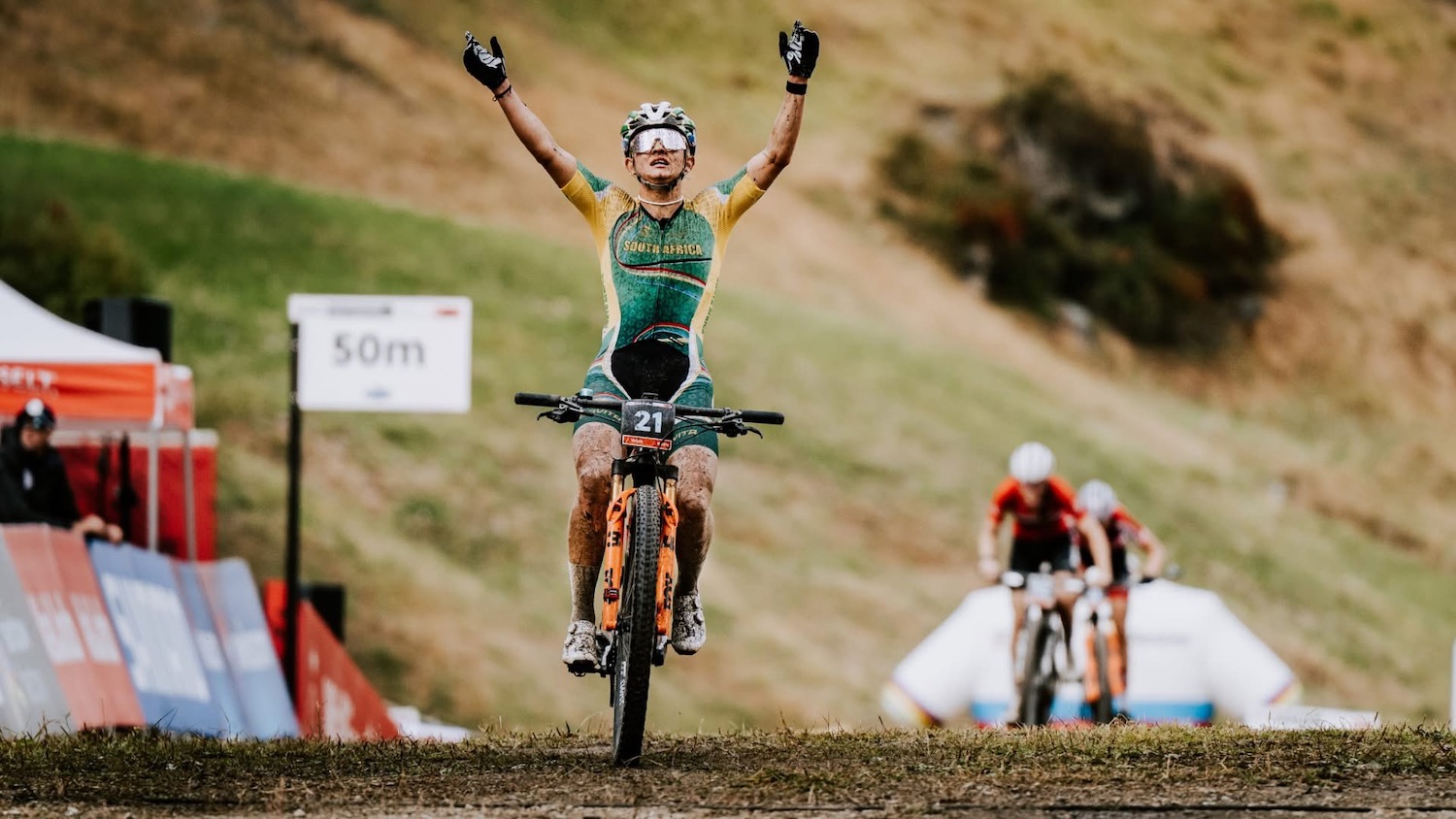 And on Tuesday afternoon on a super-fast, mostly narrow and damp course in Crans Montana, Switzerland, the 21-year-old South African raced smart and secured the historic medal for herself and her country. Jacobs will also contest the longer Under-23 Women’s XCO World Championship race on Sunday.