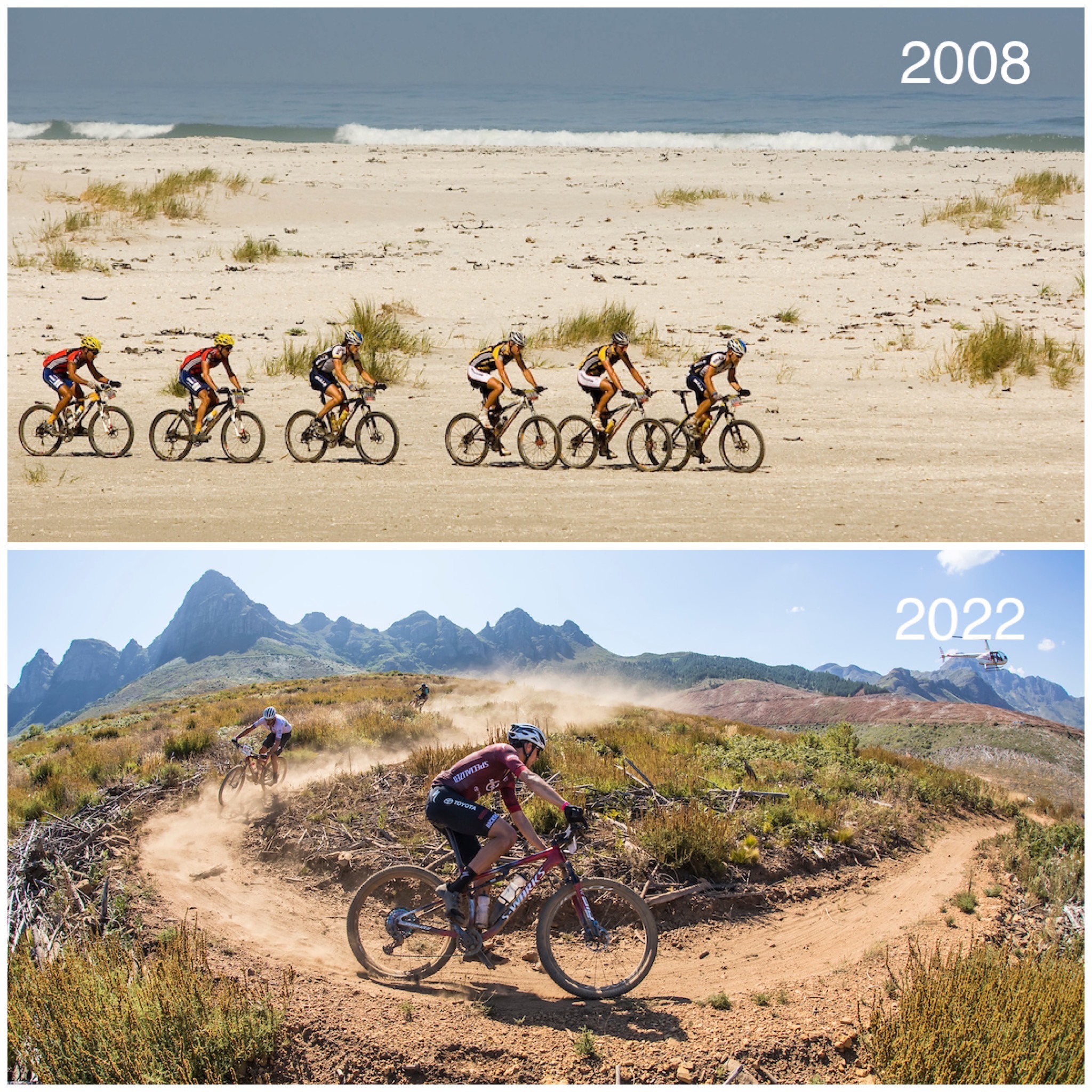 The obvious differences between the 2008 and 2022 editions are the race format and the route. The 2008 edition was the last point-to-point version from Knysna to Stellenbosch. Back then, mountain biking wasn’t that popular and there were limited established singletrack trails, so the route covered a lot of ground on gravel roads and jeep track. Nowadays, the route uses a clover-leaf format with more than 60% singletrack.
