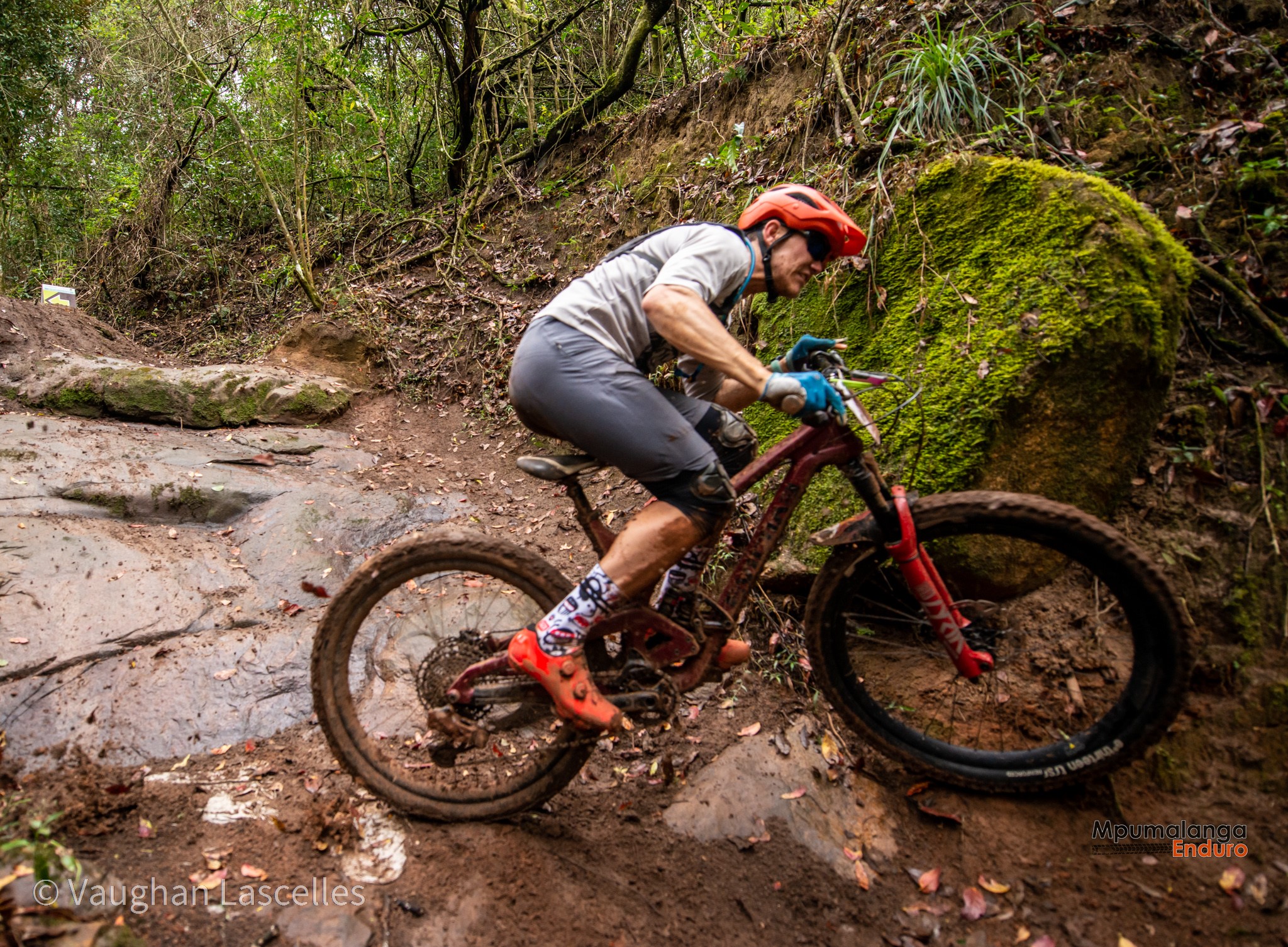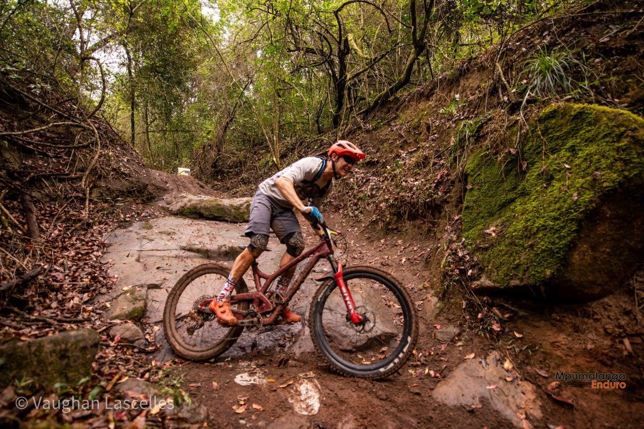 Curiously, Van Eck’s bike, an XCO hardtail, has a damaged frame so he has raced all three rounds of the Mpumalanga Enduro Series on three different borrowed bikes.