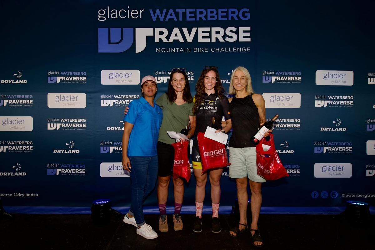 The solo men’s champion exemplified the Glacier Waterberg Traverse spirit. Not only did he win the race, but Withaar then pedalled back to a water point, on Stages 1 and 2, to indulge in the Dryland Event Management treats. This included steak, fresh off the braai, home baked banana bread and even a beer. Withaar also turned translator during prize giving on Saturday evening, translating French to English for the crowd.